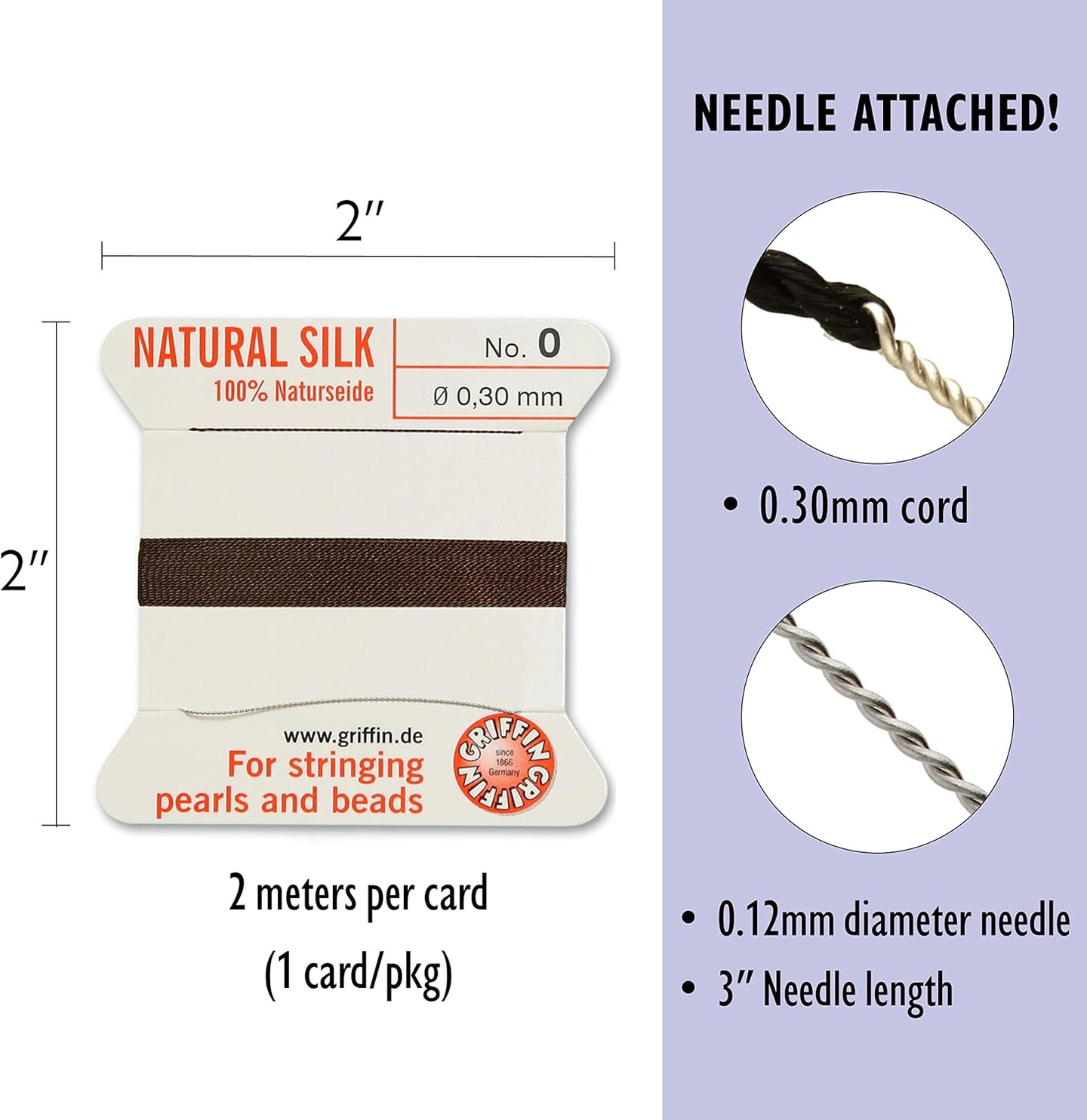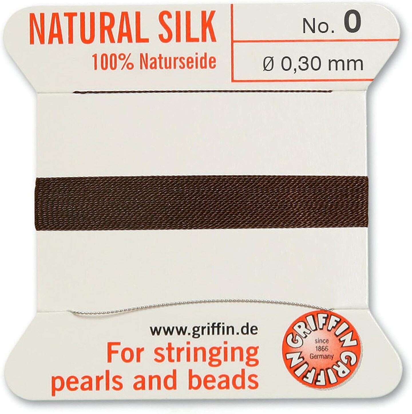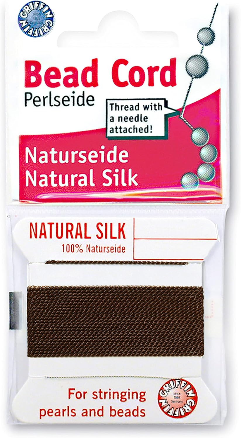 Griffin Silk Bead Cord Perlseide – Size 0 (0.30mm) – 2 Meters per Card – Stainless Steel Needle Attached – for Knotting Pearls, Gemstones, Crystals and Beads