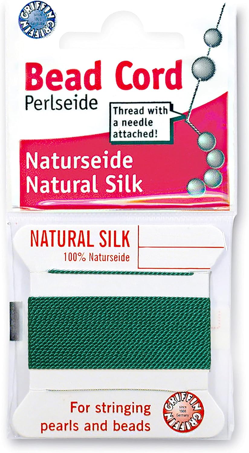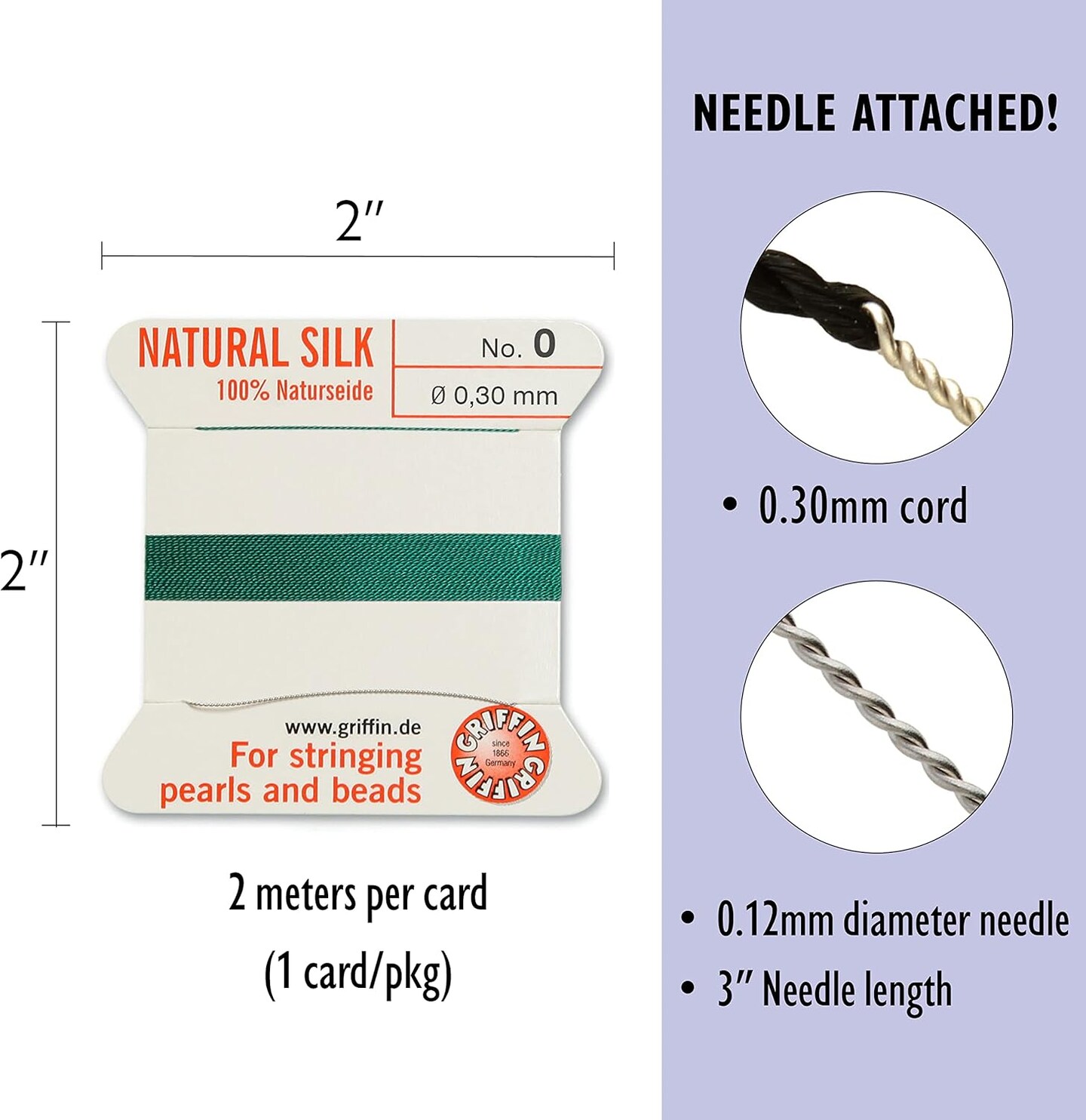 Griffin Silk Bead Cord Perlseide – Size 0 (0.30mm) – 2 Meters per Card – Stainless Steel Needle Attached – for Knotting Pearls, Gemstones, Crystals and Beads