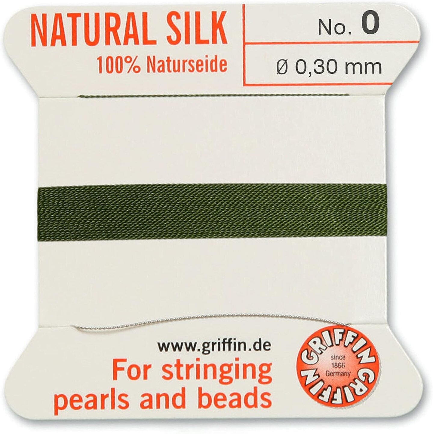 Griffin Silk Bead Cord Perlseide – Size 0 (0.30mm) – 2 Meters per Card – Stainless Steel Needle Attached – for Knotting Pearls, Gemstones, Crystals and Beads