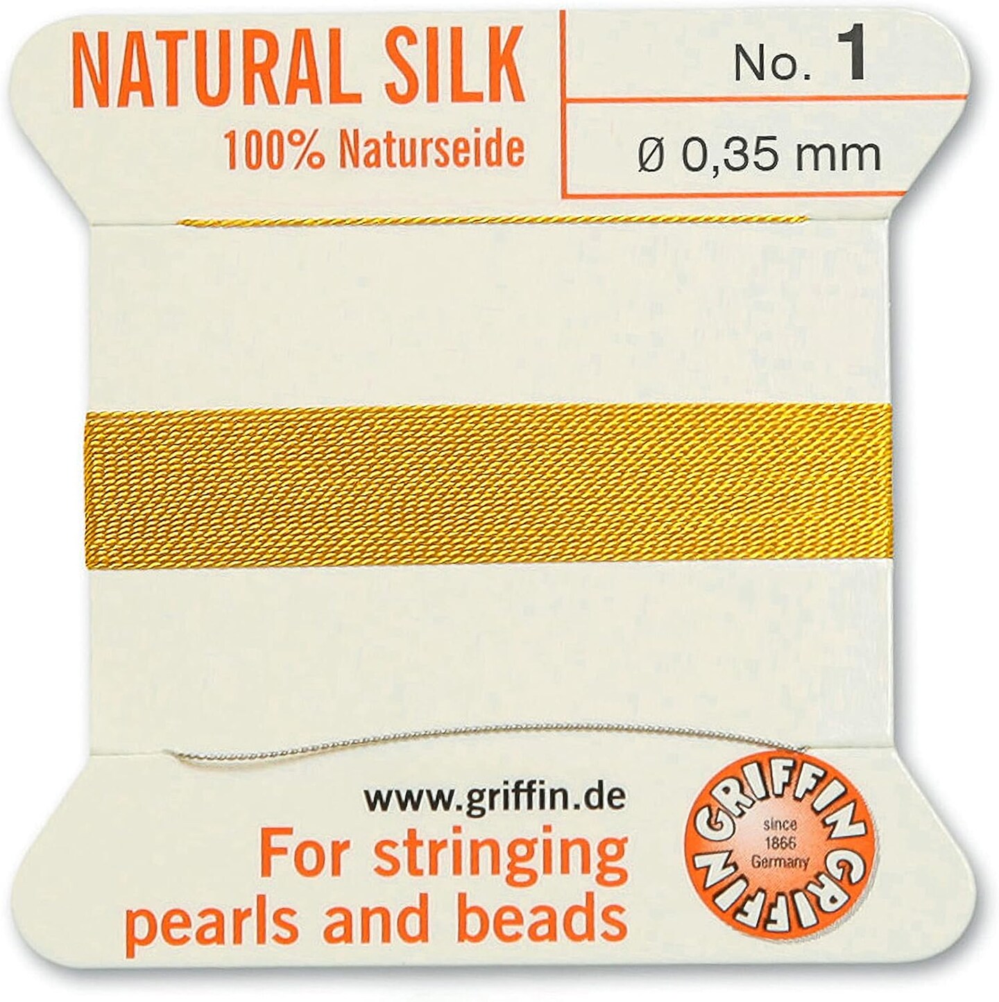 Griffin Silk Bead Cord Perlseide – Size 1 (0.35mm) – 2 Meters per Card – Stainless Steel Needle Attached – for Knotting Pearls, Gemstones, Crystals and Beads