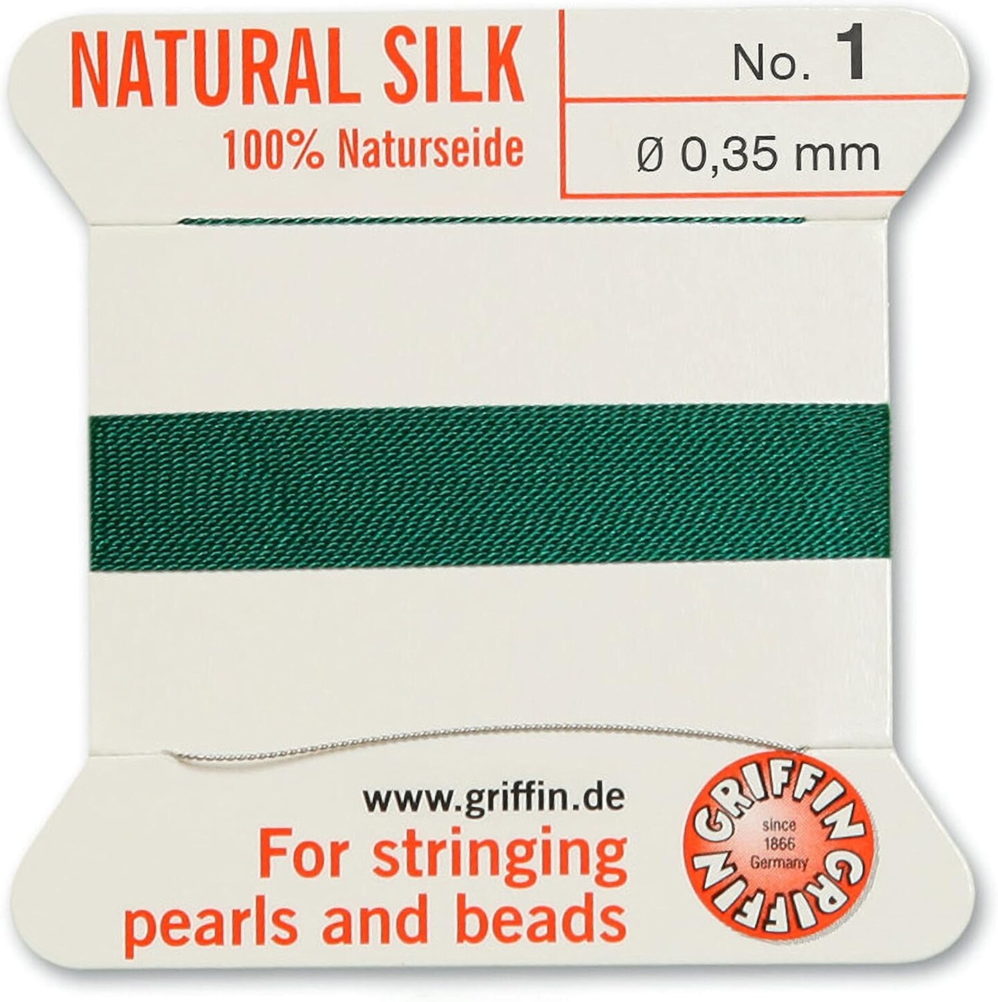 Griffin Silk Bead Cord Perlseide – Size 1 (0.35mm) – 2 Meters per Card – Stainless Steel Needle Attached – for Knotting Pearls, Gemstones, Crystals and Beads