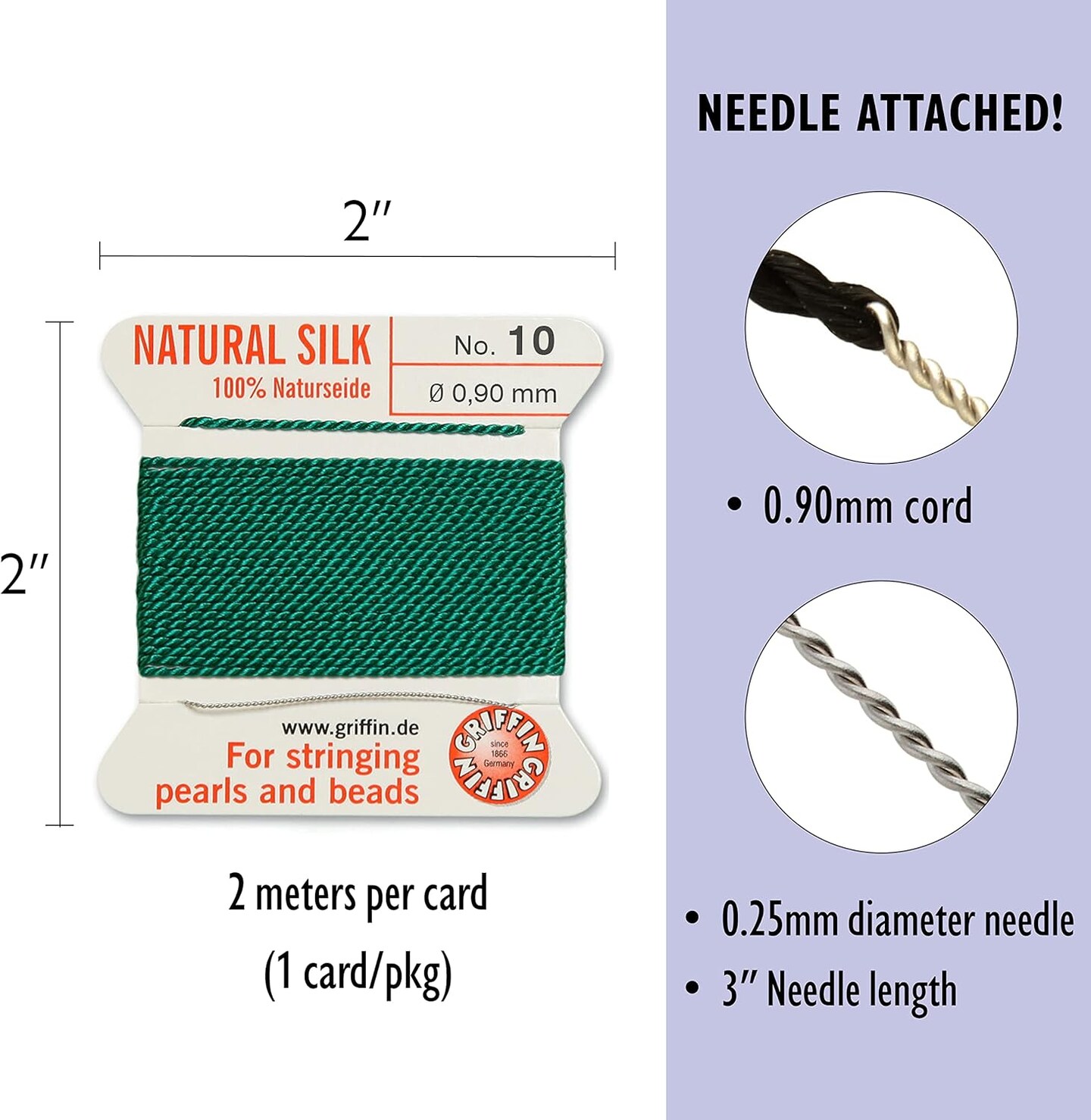 Griffin Silk Bead Cord Perlseide – Size 10 (0.90mm) – 2 Meters per Card – Stainless Steel Needle Attached – for Knotting Pearls, Gemstones, Crystals and Beads