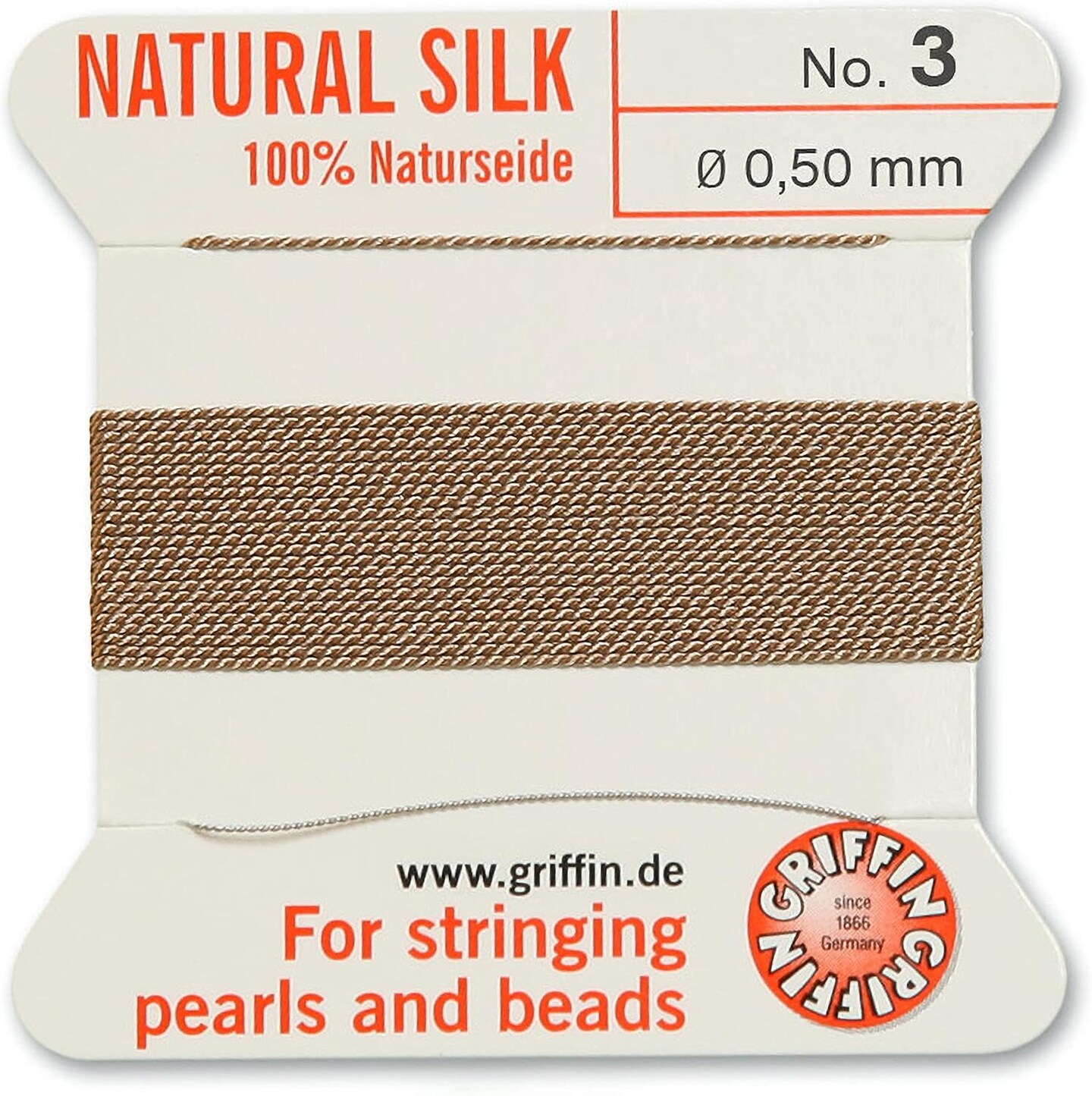 Griffin Silk Bead Cord Perlseide – Size 3 (0.50mm) – 2 Meters per Card – Stainless Steel Needle Attached – for Knotting Pearls, Gemstones, Crystals and Beads