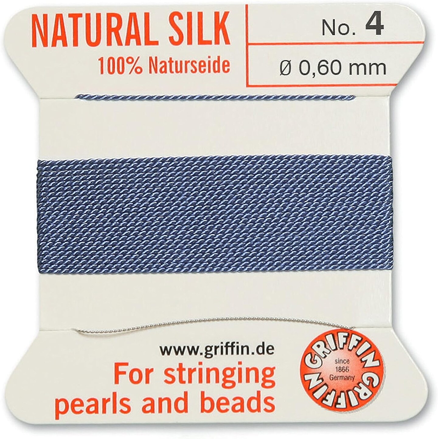 Griffin Silk Bead Cord Perlseide – Size 4 (0.60mm) – 2 Meters per Card – Stainless Steel Needle Attached – for Knotting Pearls, Gemstones, Crystals and Beads