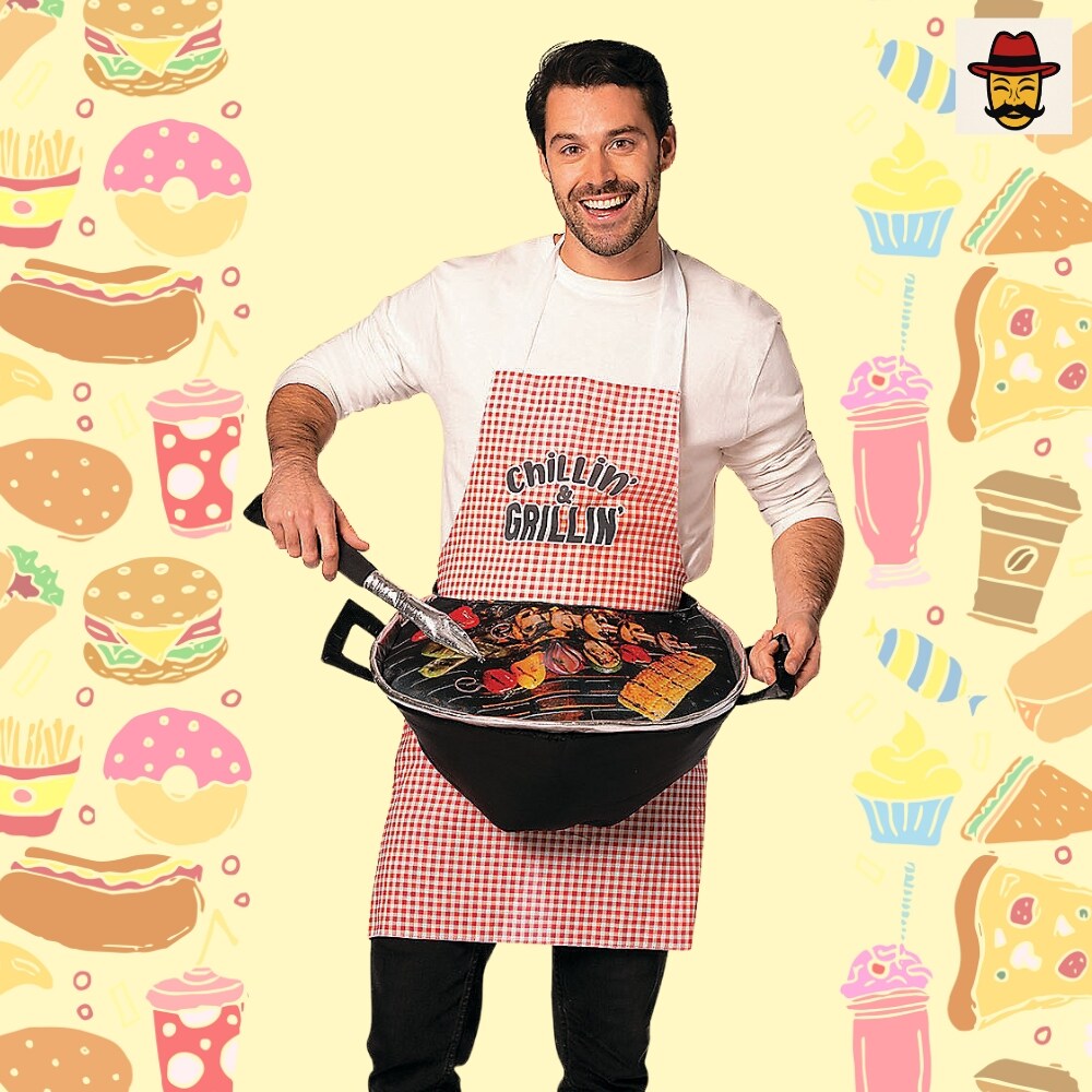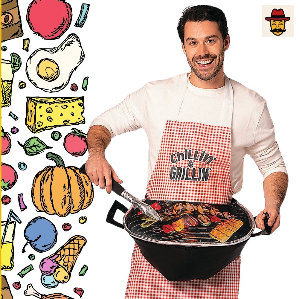 Grill Master Costume Apron With 3D Grill Funny BBQ Halloween Outfit