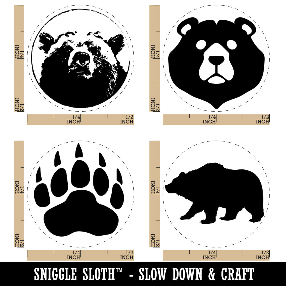 Grizzly Black Bear Head Claw Paw Print Rubber Stamp Set for Stamping Crafting Planners