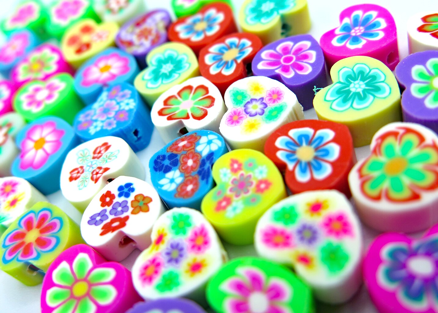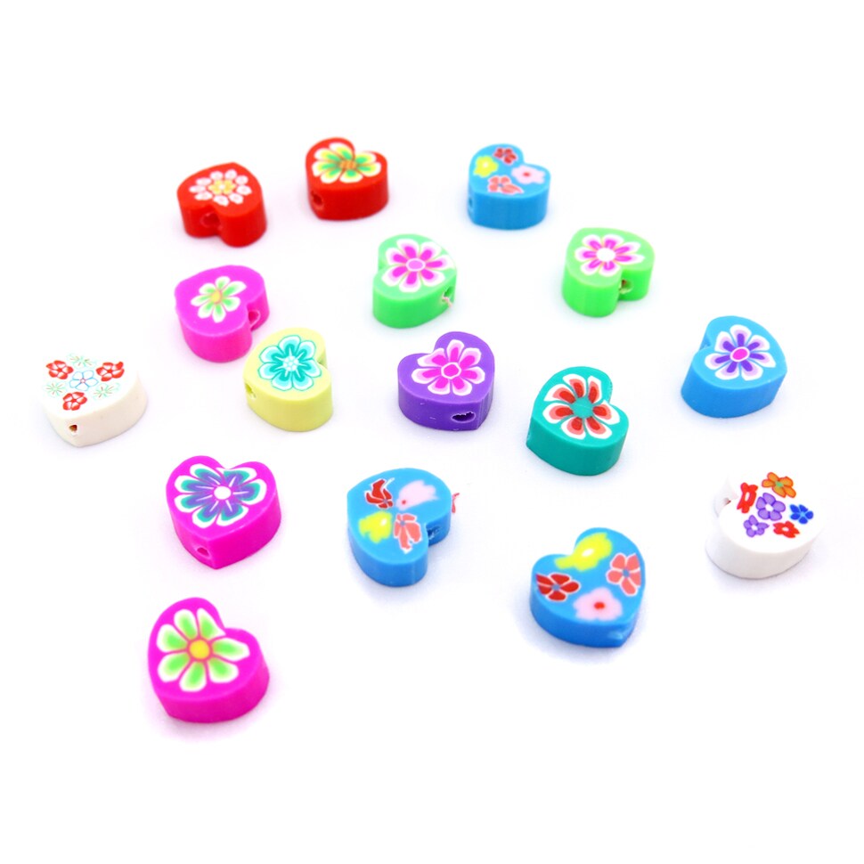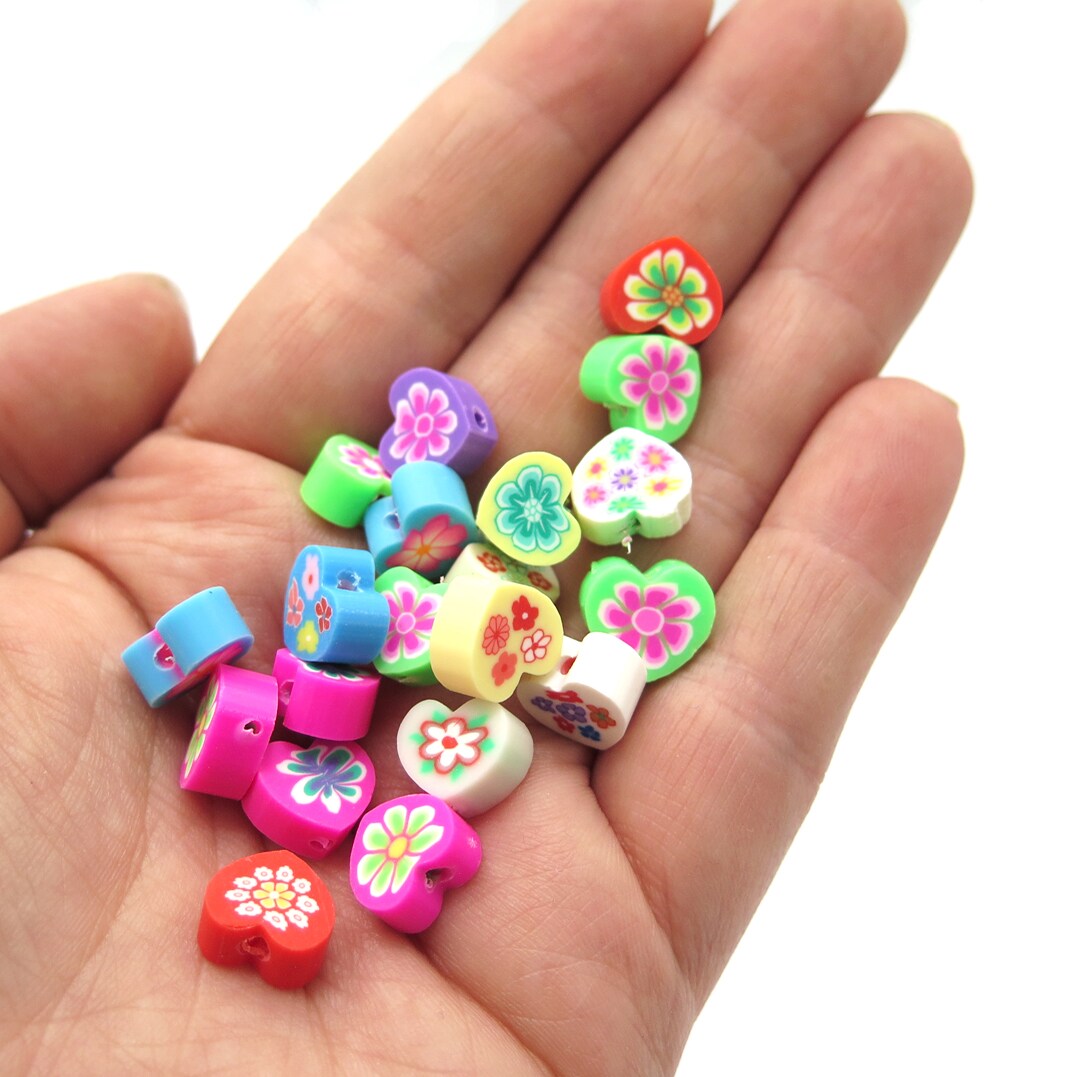 Groovy Floral Heart Shaped Polymer Clay Beads (K119) (16x)