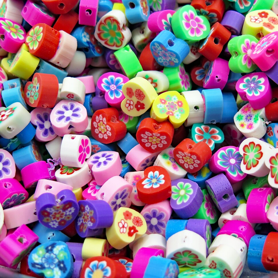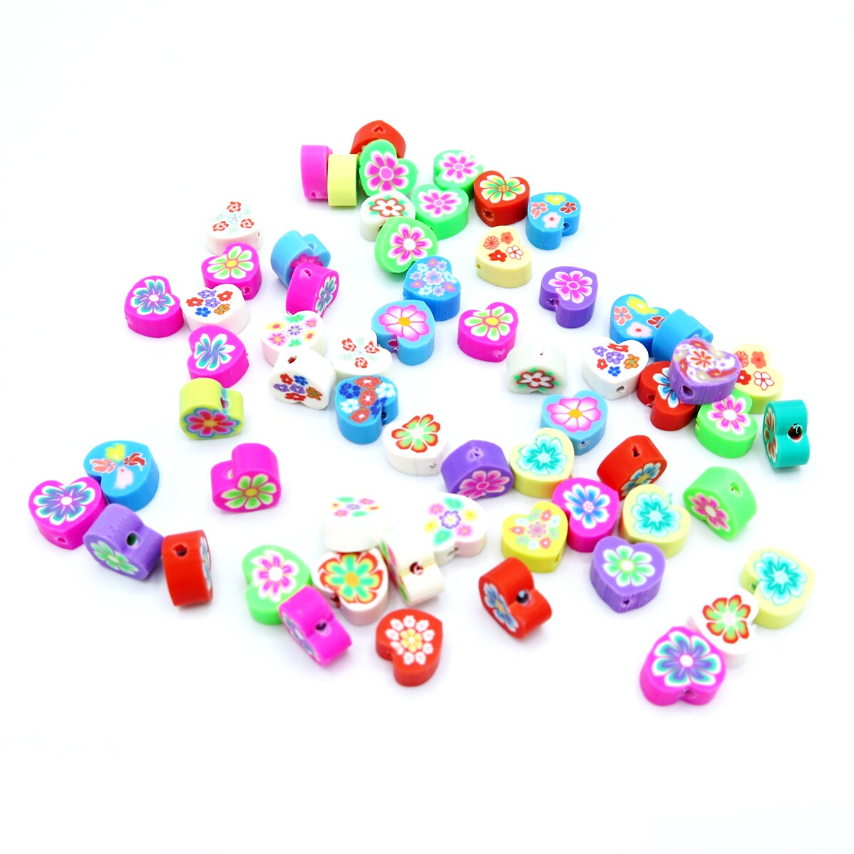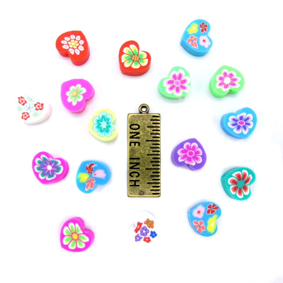 Groovy Floral Heart Shaped Polymer Clay Beads (K119) (16x)