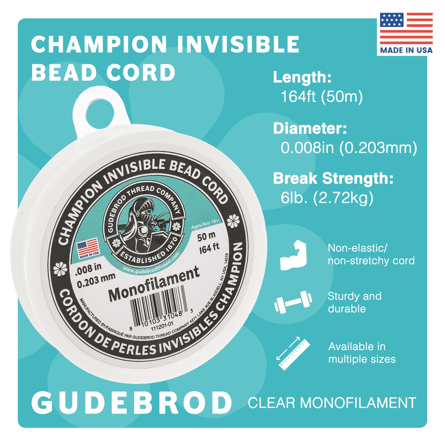 Gudebrod 0.008" Monofilament Champion Invisible Clear Cord | Made in USA