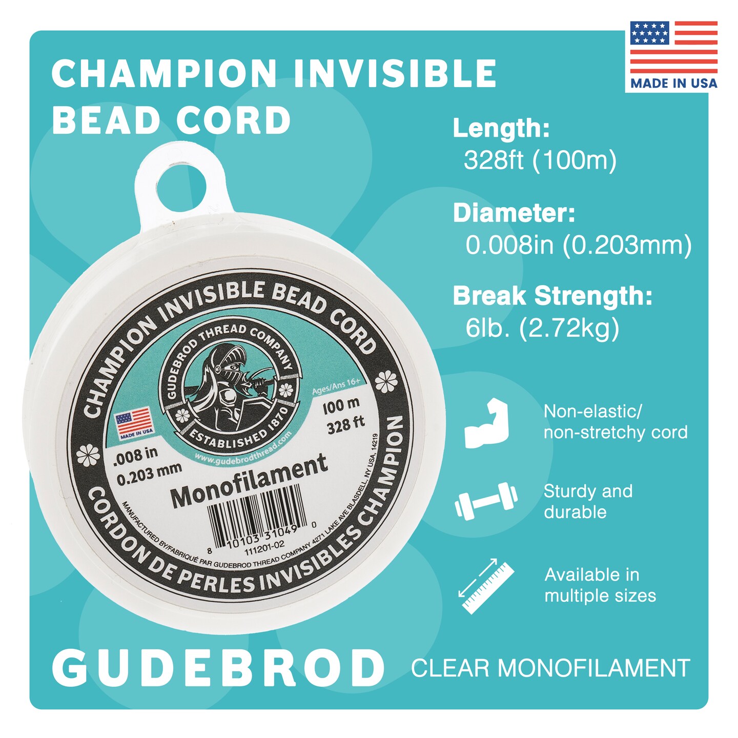 Gudebrod 0.008" Monofilament Champion Invisible Clear Cord | Made in USA