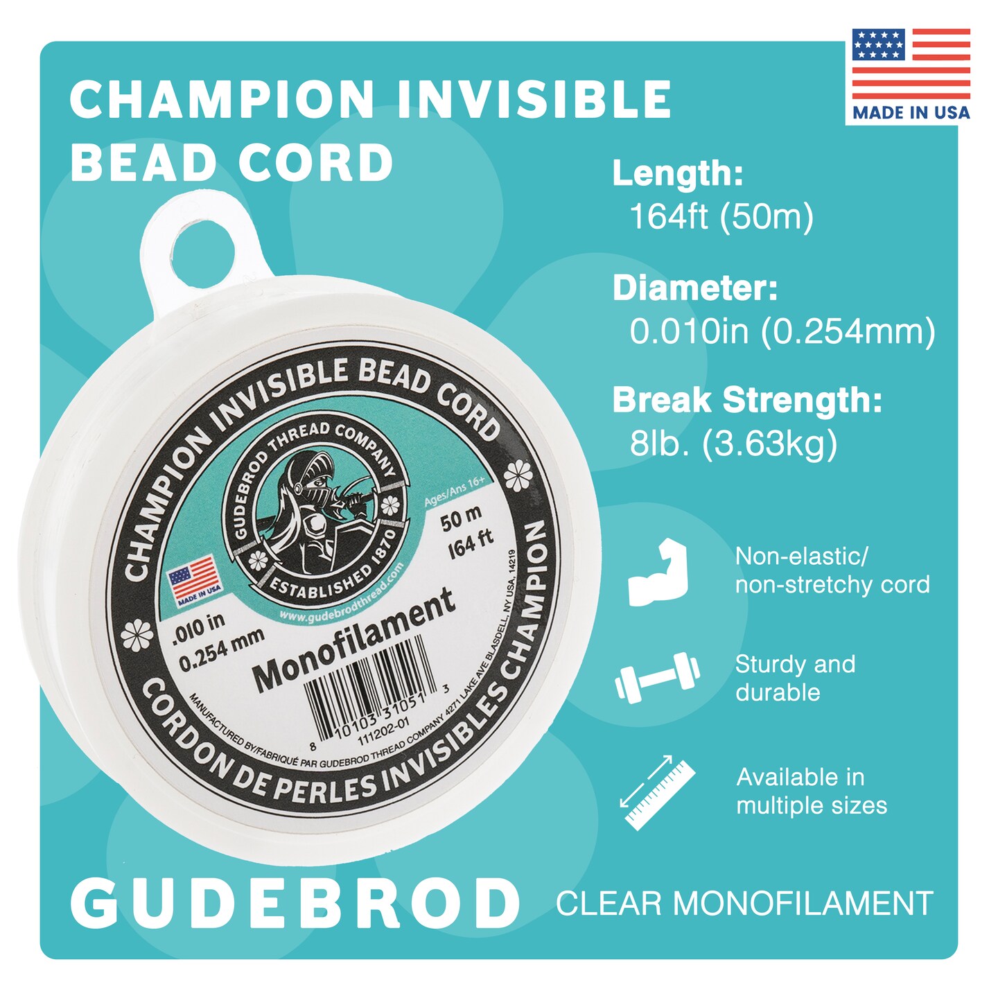 Gudebrod 0.01" Monofilament Champion Invisible Clear Cord | Made in USA