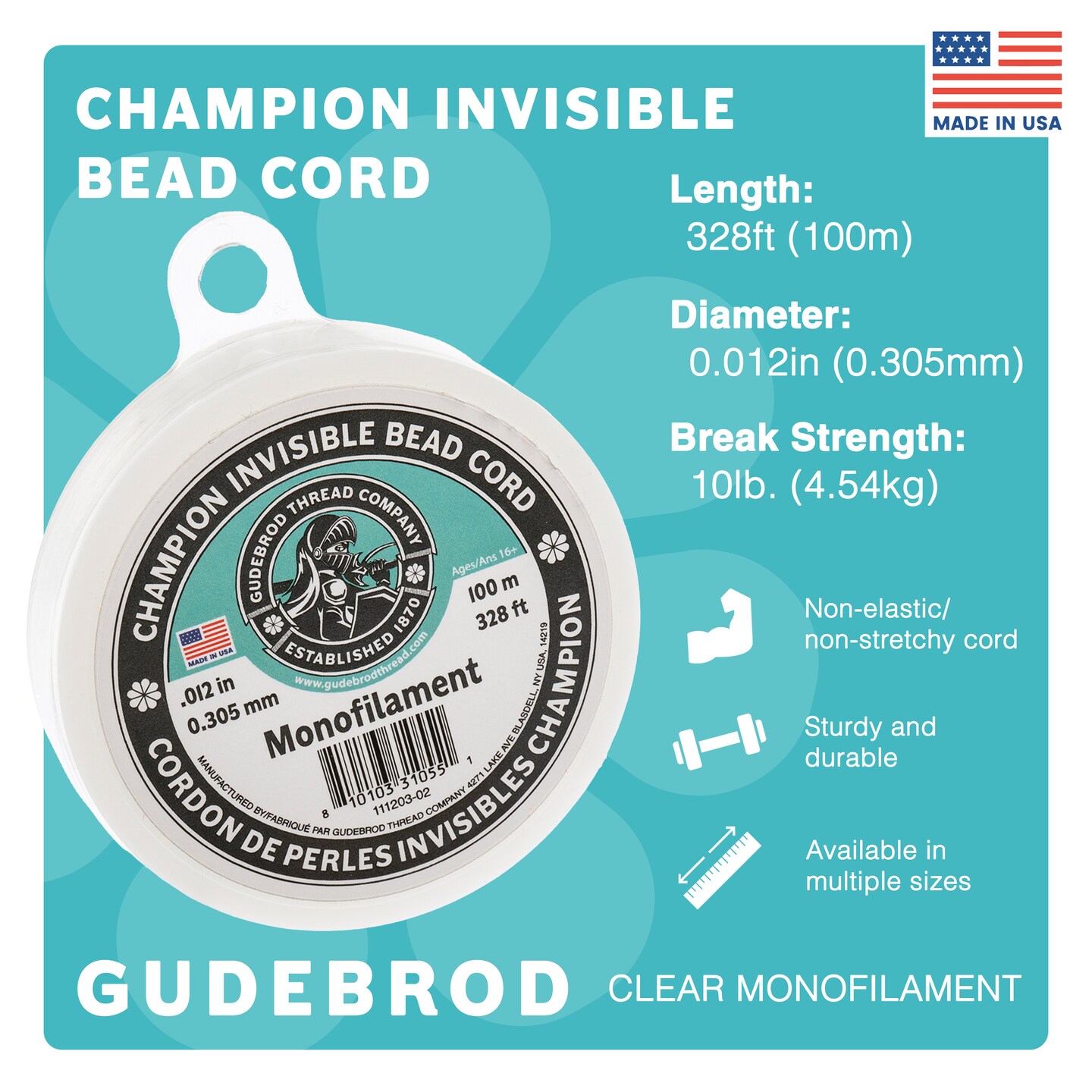 Gudebrod 0.012" Monofilament Champion Invisible Clear Cord | Made in USA