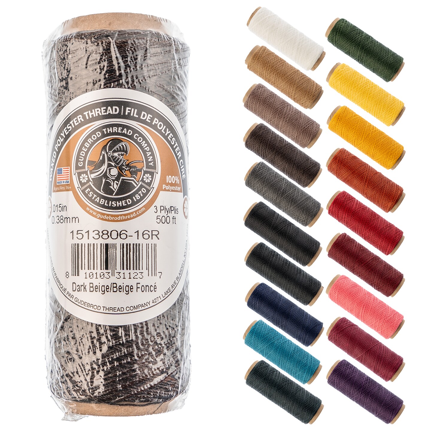 Gudebrod 0.015" Waxed Polyester Thread 500ft | Made In USA