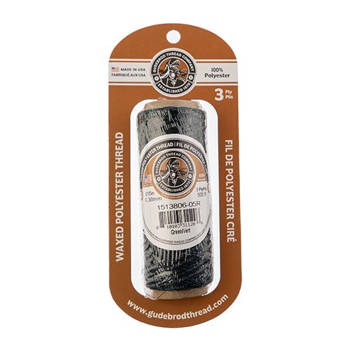 Gudebrod Waxed Thread 3ply Made In USA 500ft (152.4m) Spool 0.38mm (0.015in), Green