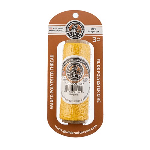 Gudebrod Waxed Thread 3ply Made In USA 500ft (152.4m) Spool 0.38mm (0.015in), Honey