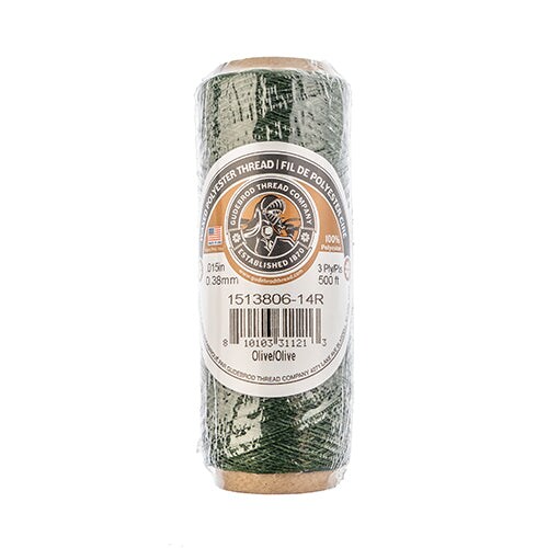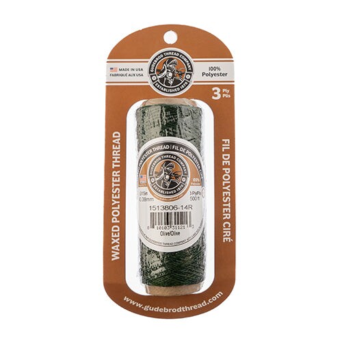 Gudebrod Waxed Thread 3ply Made In USA 500ft (152.4m) Spool 0.38mm (0.015in), Olive