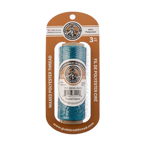 Gudebrod Waxed Thread 3ply Made In USA 500ft (152.4m) Spool 0.38mm (0.015in), Turquoise