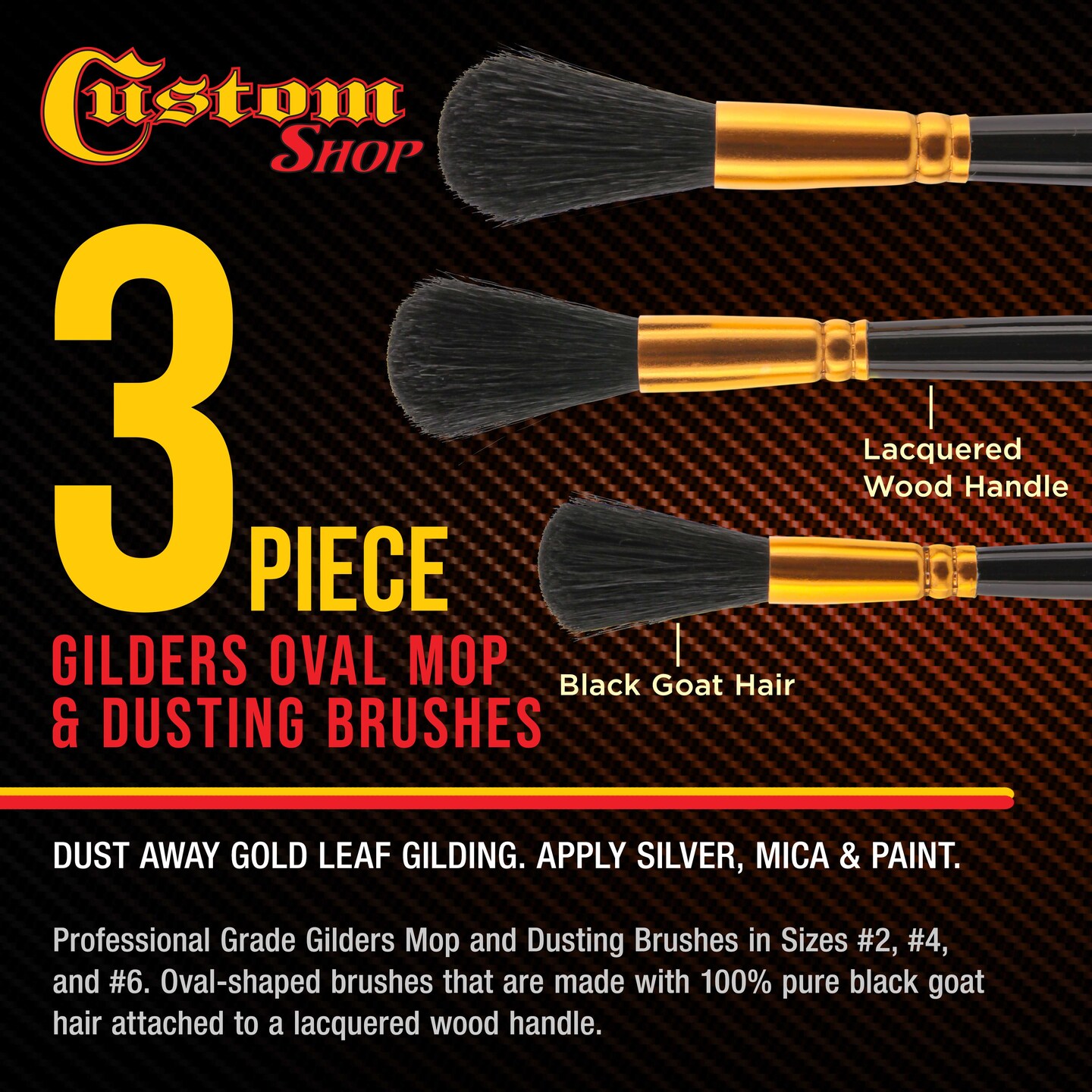 Guilders Mop Dusting Brush, Set of 3, Sizes 2, 4 & 6 - Professional Grade Black Goat Hair Oval Shaped Brushes with Wooden Handles - Dust Away Gold Leaf Guilding, Sign Lettering
