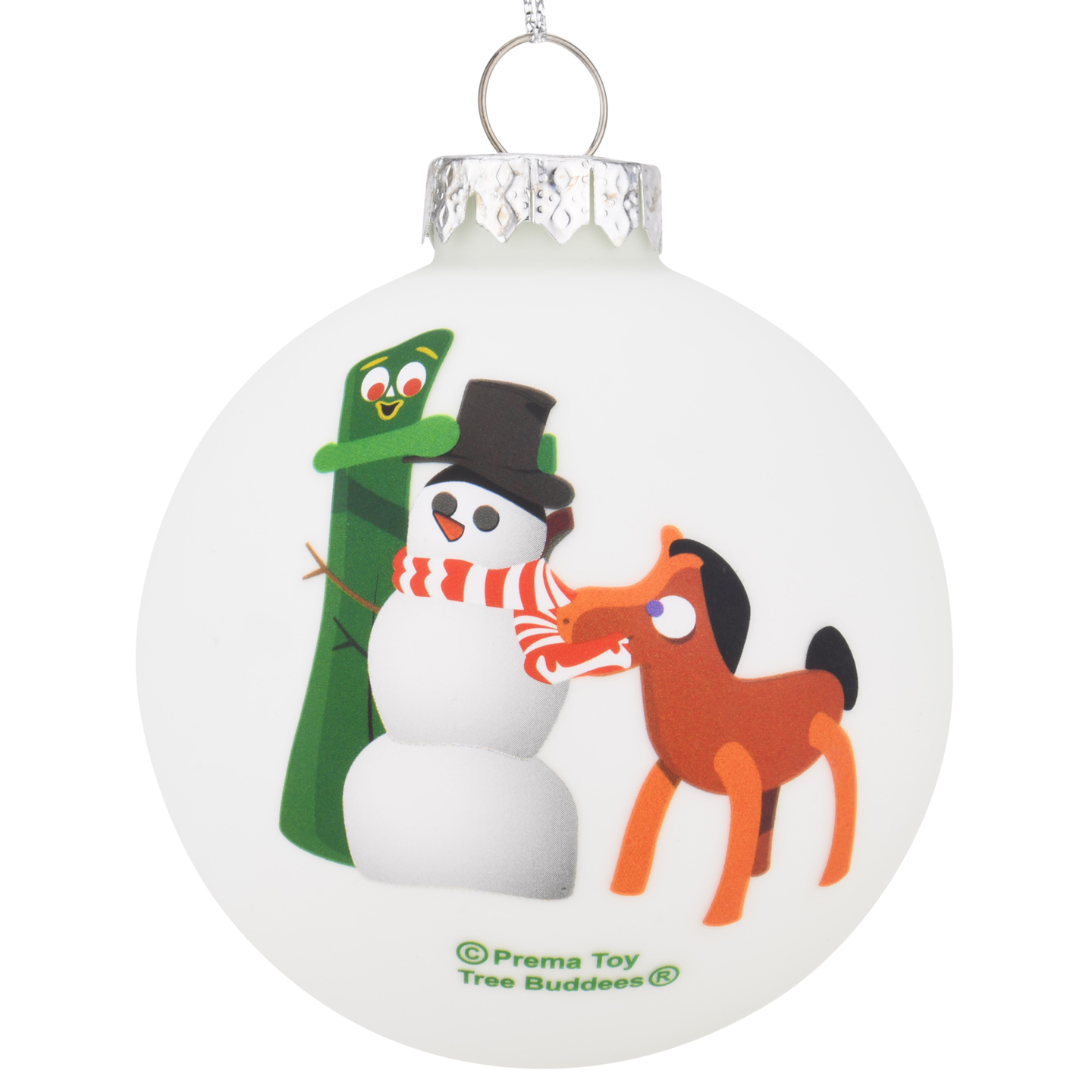 Gumby and Pokey Building a Snowman Glass Ornament Limited Edition