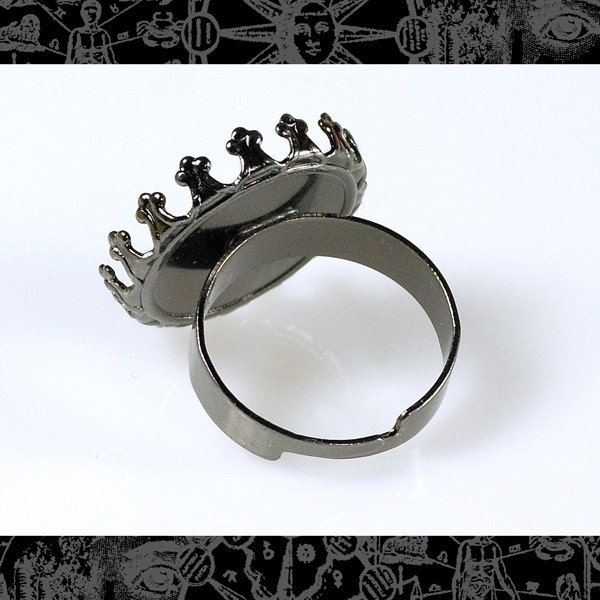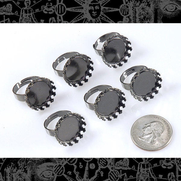 Gunmetal Finish Filigree Ring Blanks with 20mm Round Settings - Set of Six - RING7