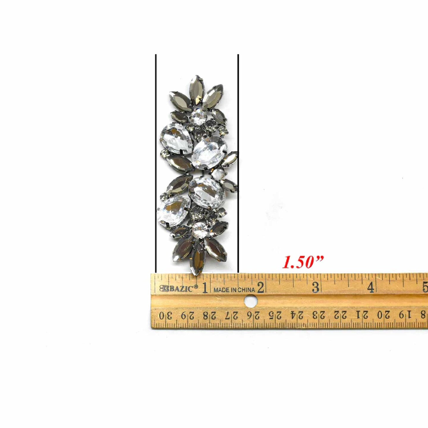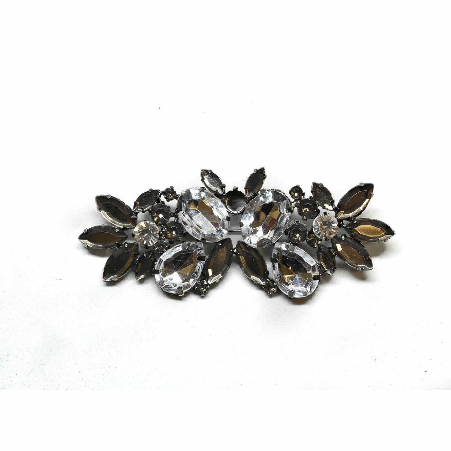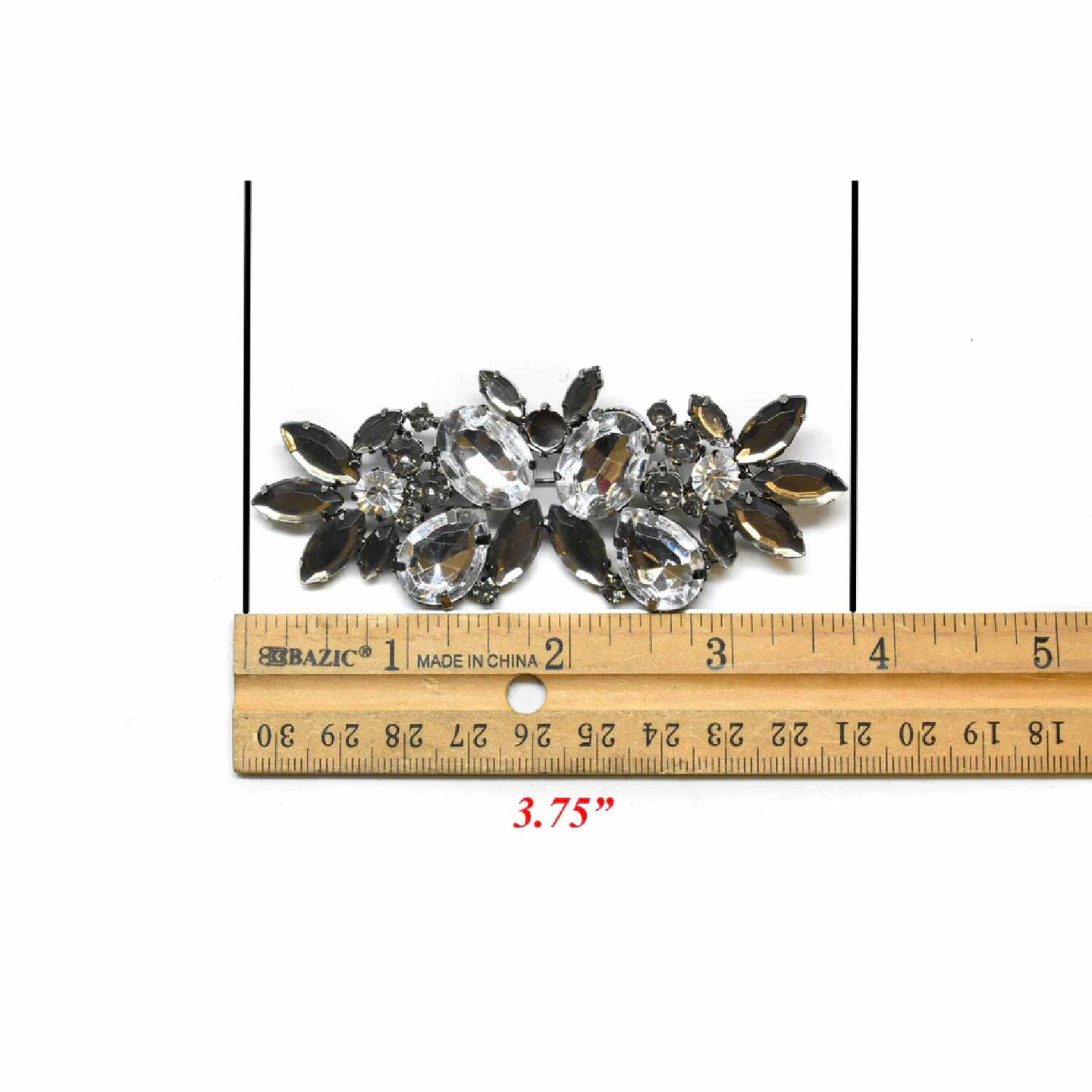 Gunmetal Rhinestone Flower Brooch Pin 3.75" x 1.50" – 1 Piece