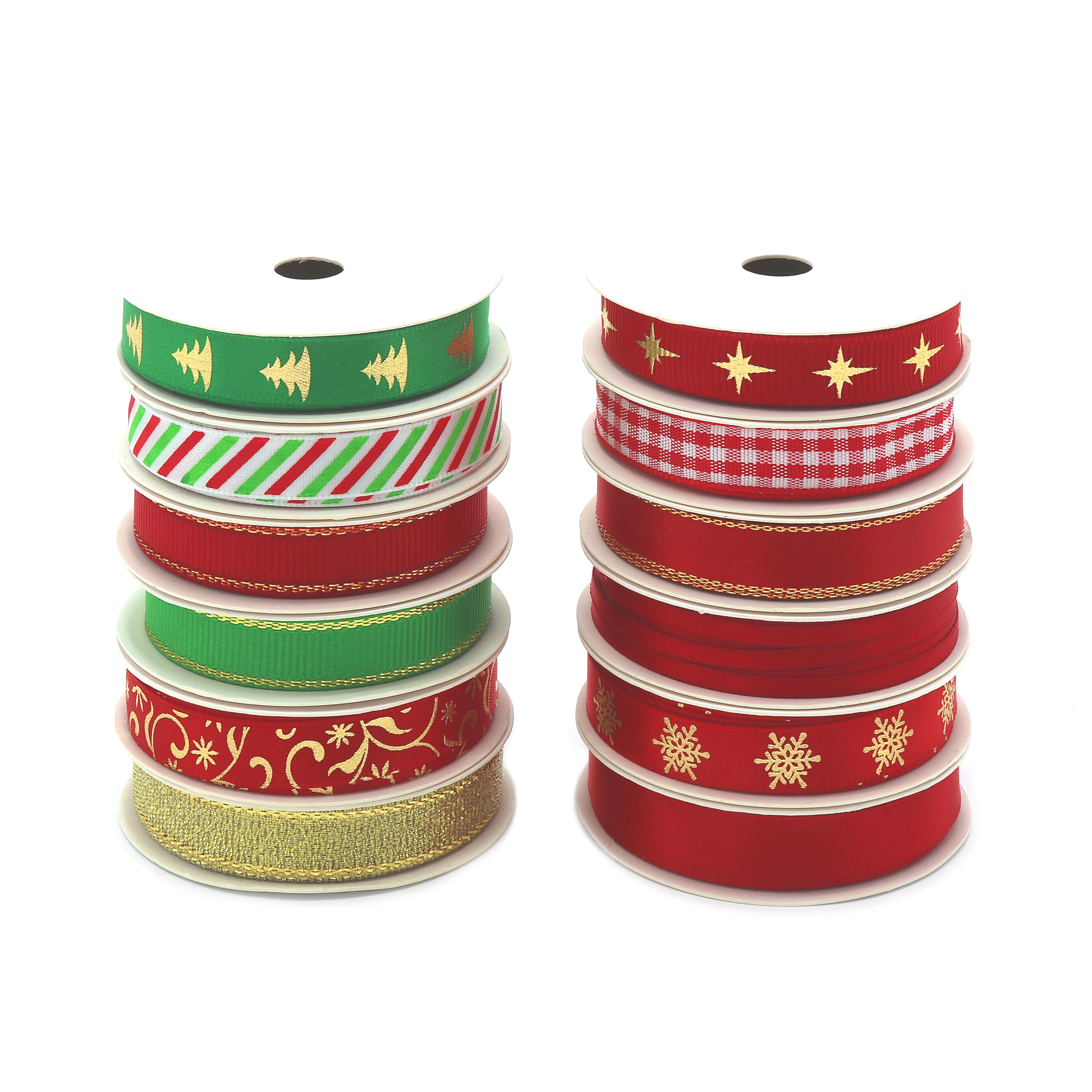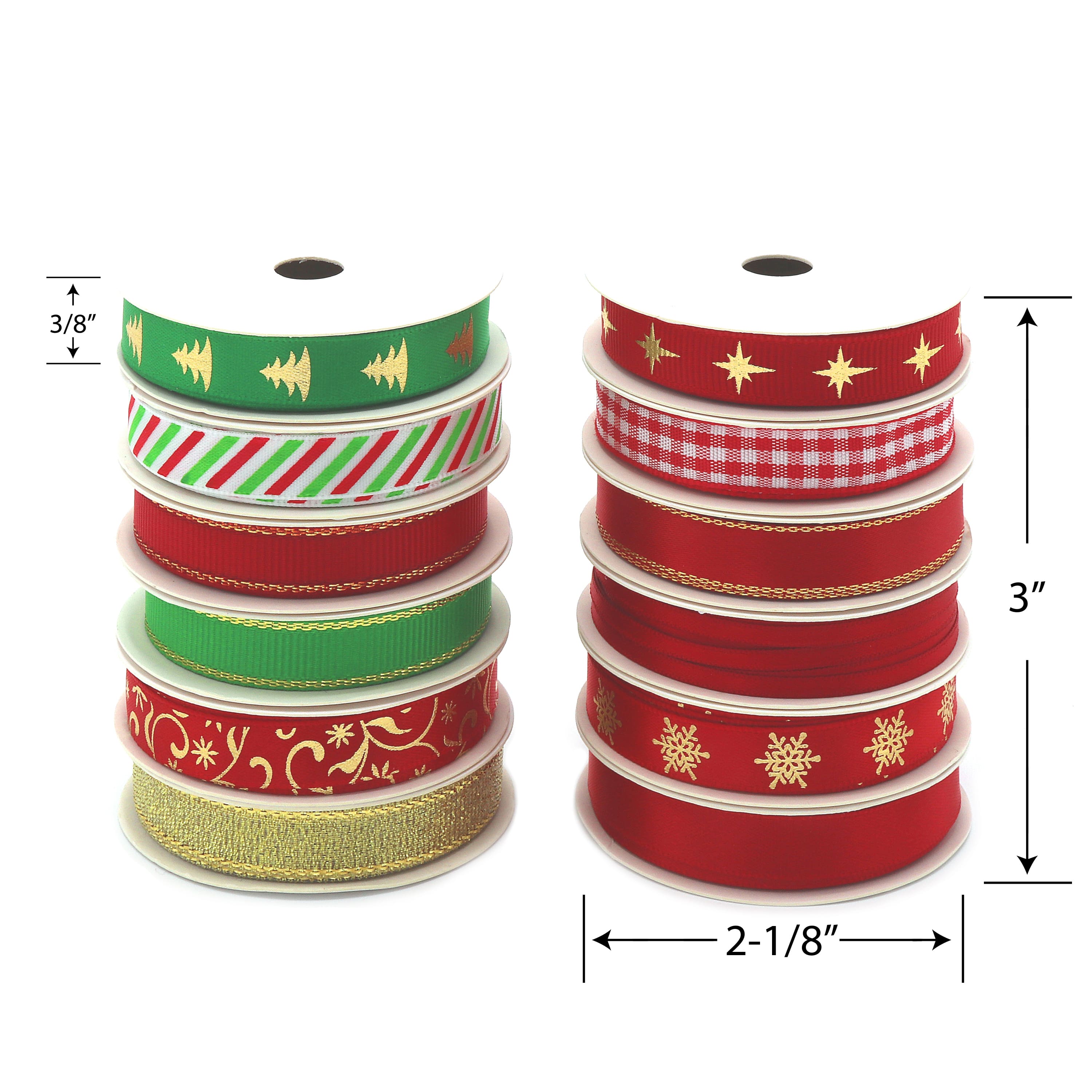 Gwen Studios 3/8" x 48yd. Green & Red Christmas Ribbon For Gifts & Crafts, 24ct.