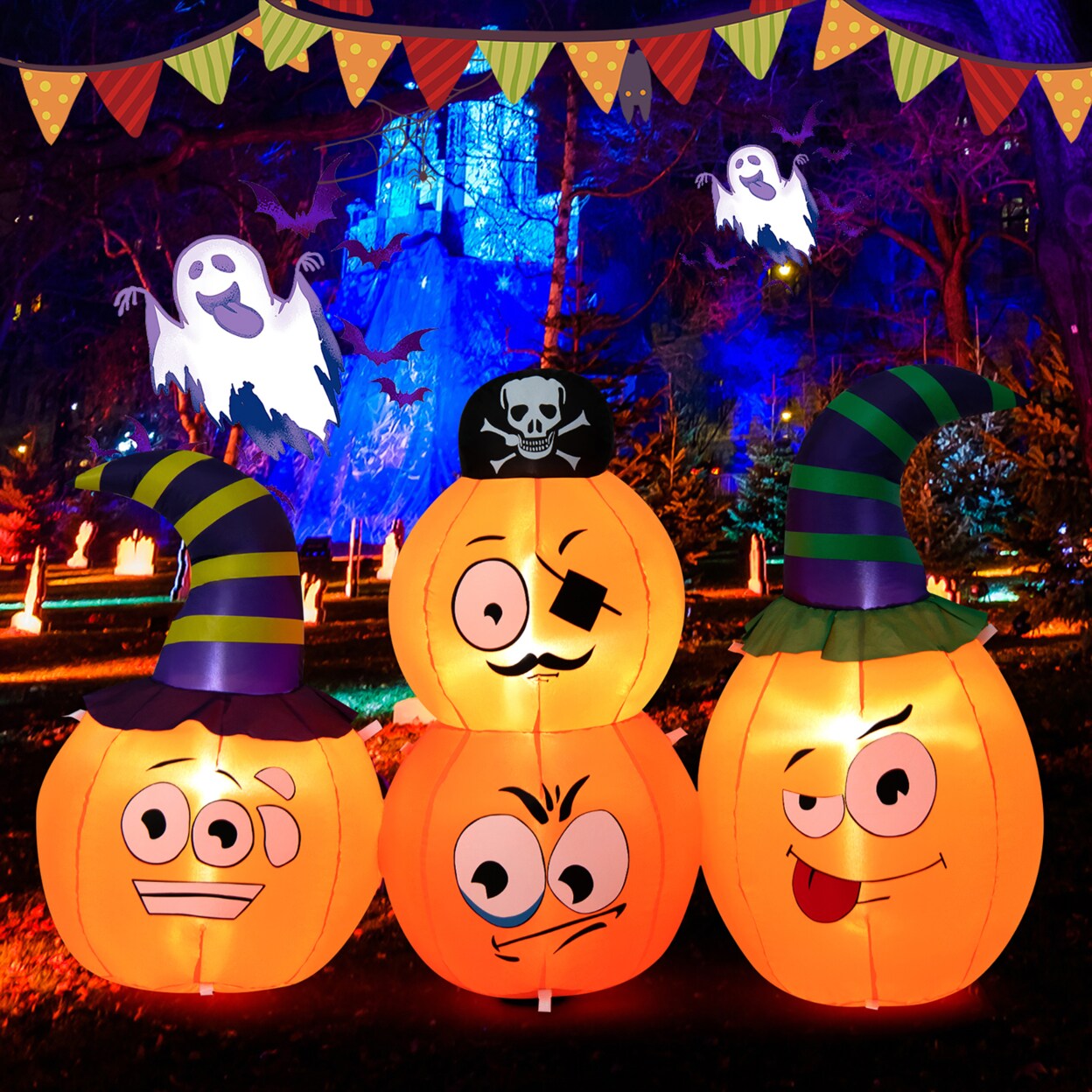 Gymax 5FT Long Inflatable Halloween 4 Pumpkin with witch HatCombo Holiday Decoration