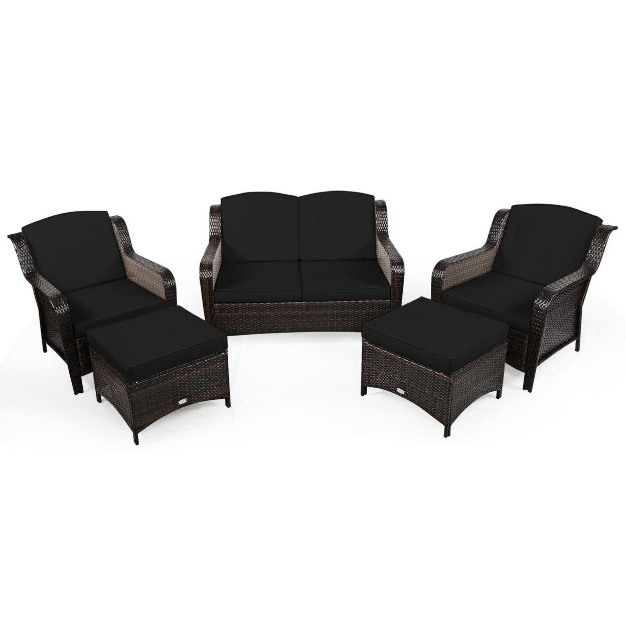 Gymax 5PCS Rattan Patio Conversation Sofa Furniture Set Outdoor w/ Black Cushions