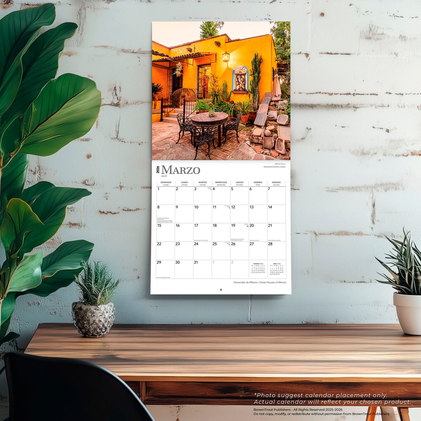 Haciendas de Mexico | Great Houses of Mexico | 2026 12 x 24 Inch (Hanging) Monthly Square Wall Calendar | English/Spanish Bilingual | Plastic-Free