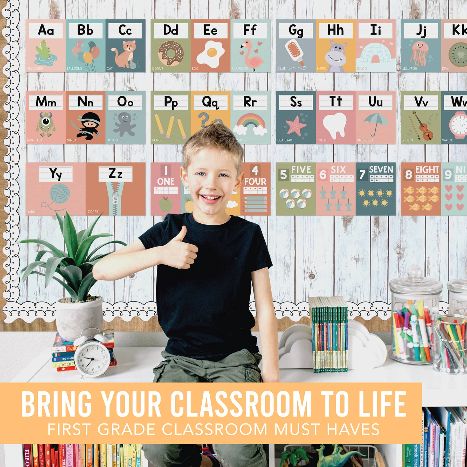 Hadley Designs 6" x 14" Boho Muted Number Line & Alphabet Letters for Classroom Wall Set