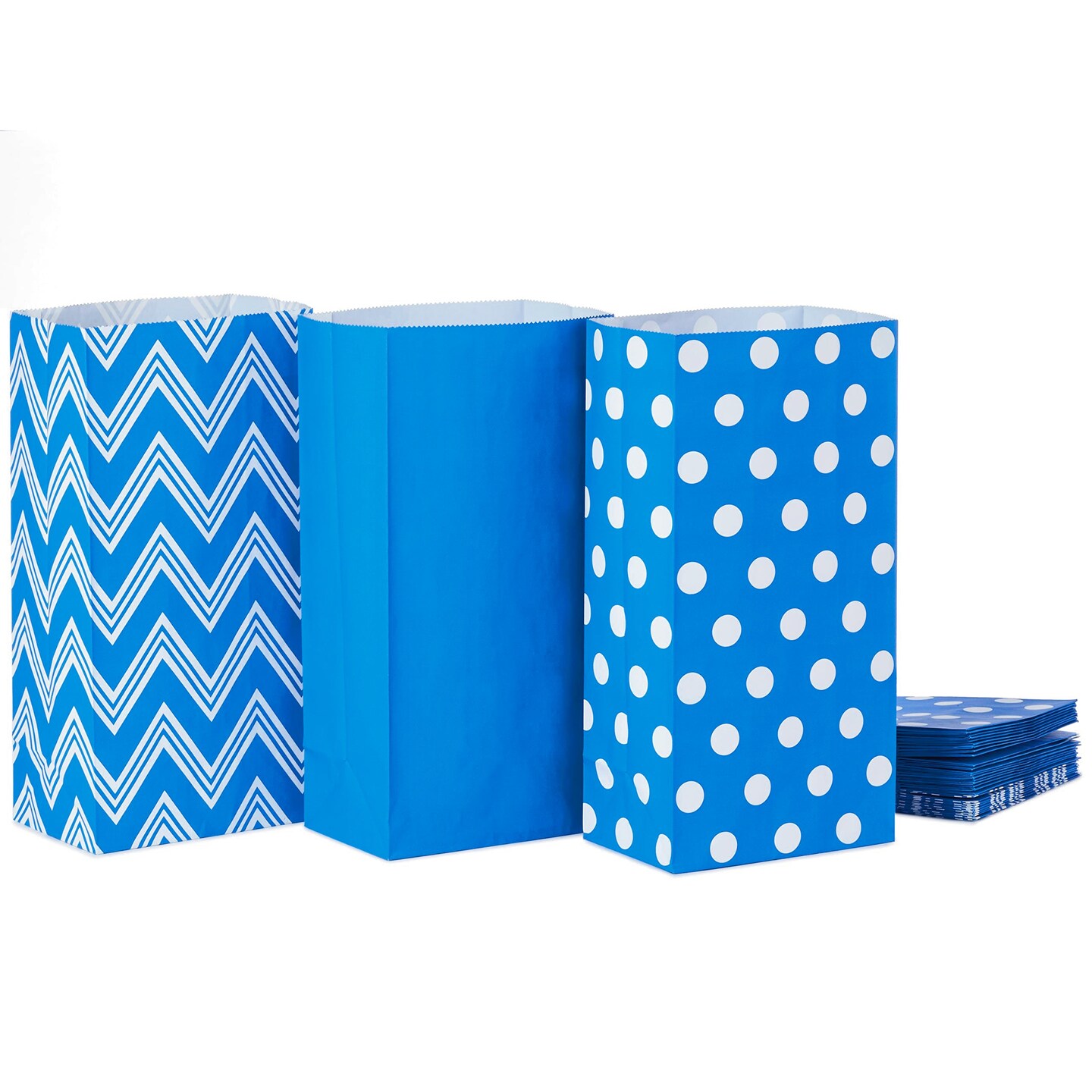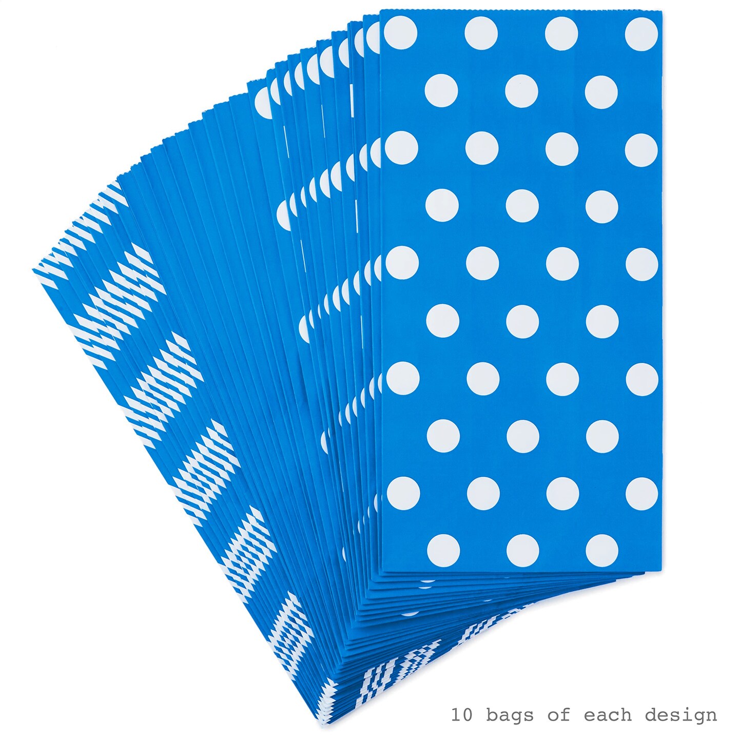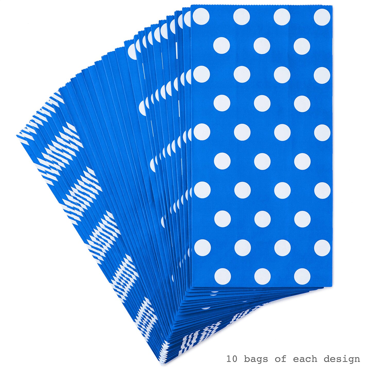 Hallmark Blue Party Favor and Wrapped Treat Bags, Assorted Designs (30 Ct., 10 Each of Chevron, White Dots, Solid) for Birthdays, Baby Showers, School Lunches, Hanukkah, Care Packages, May Day