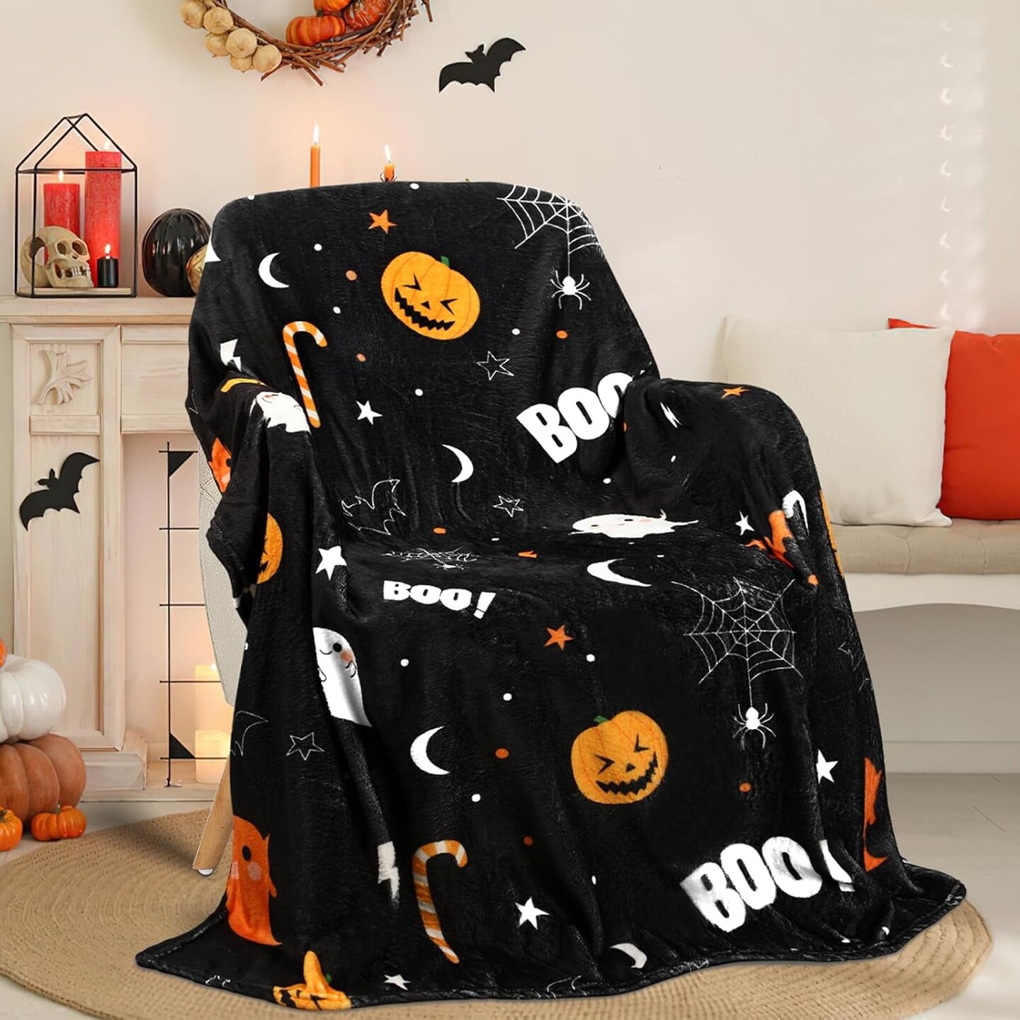 Halloween Blanket Black Throw Pumpkin Funny Ghost Spooky Spider Bats Flannel Halloween Fleece Blankets and Throws for Bedding Sofa Couch 50 Inches X 60 Inches