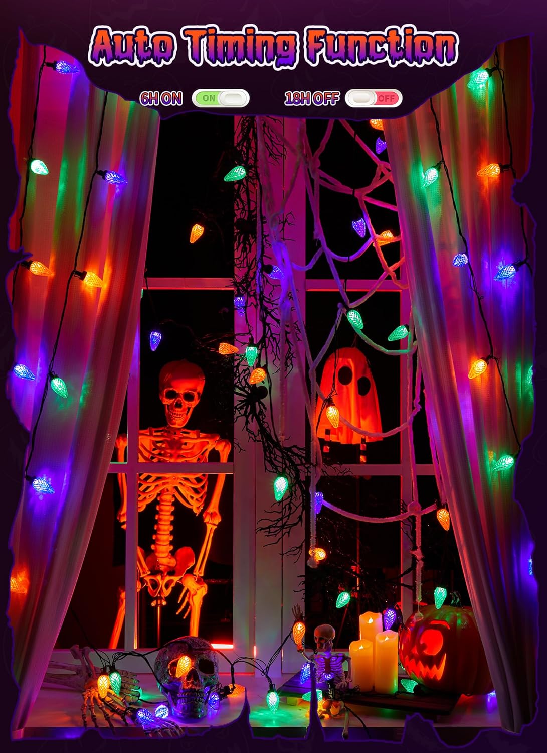 Halloween C9 LED String Lights (Orange Purple and Green)
