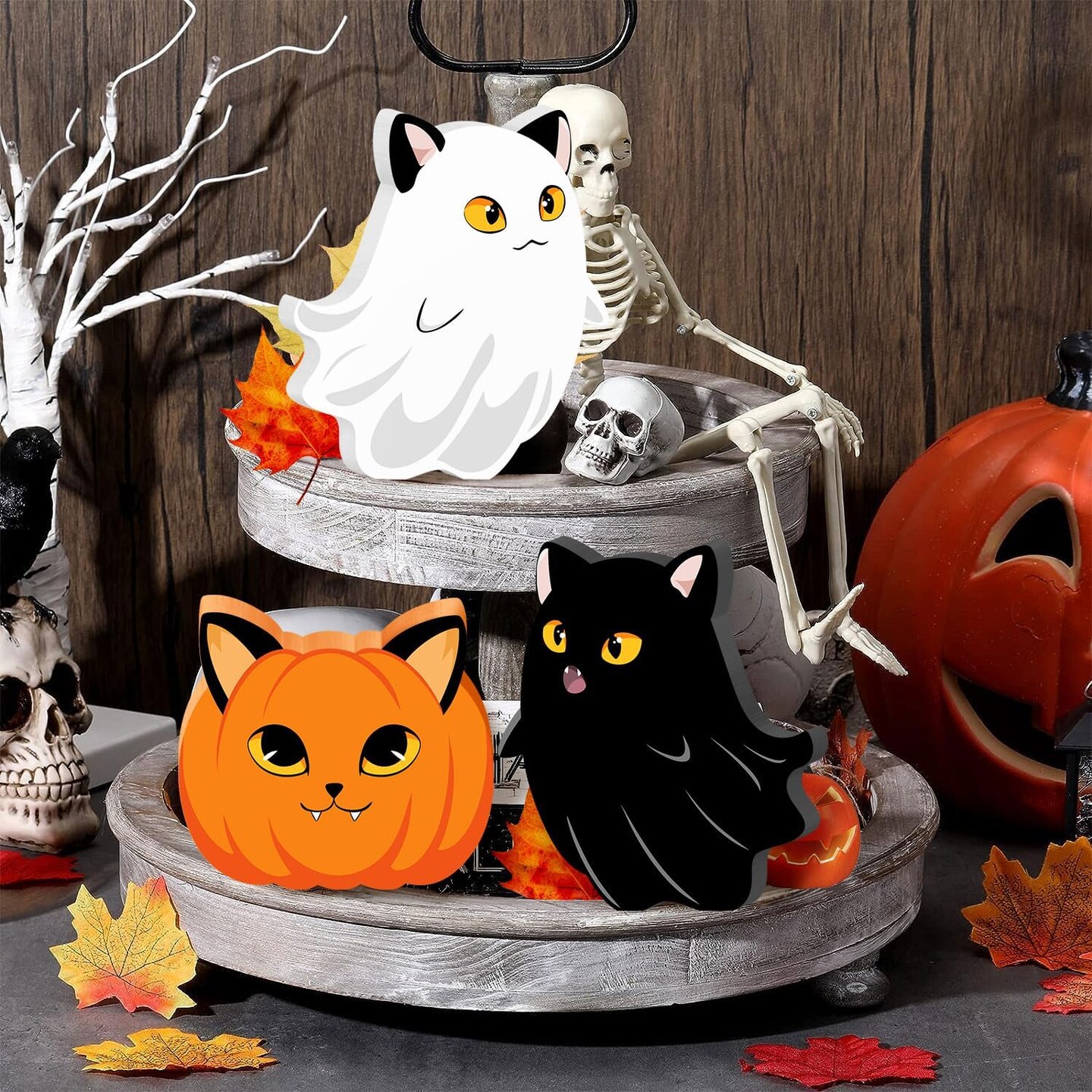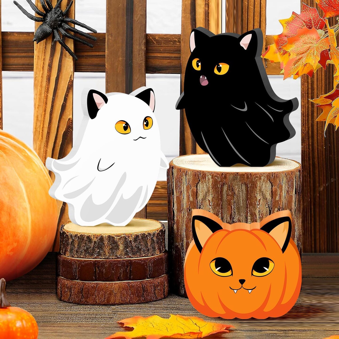 Halloween Cat Ghost Wooden Signs Pumpkin Decor - 3PCS
