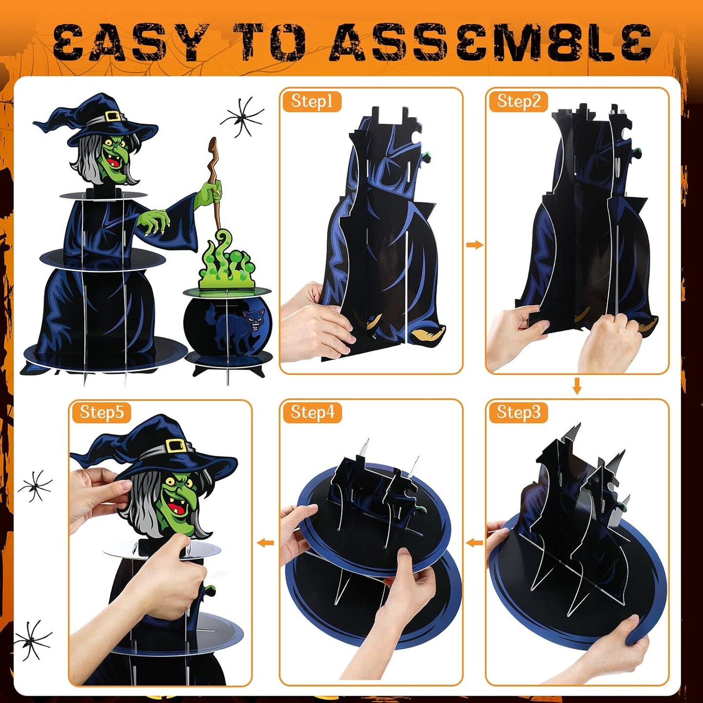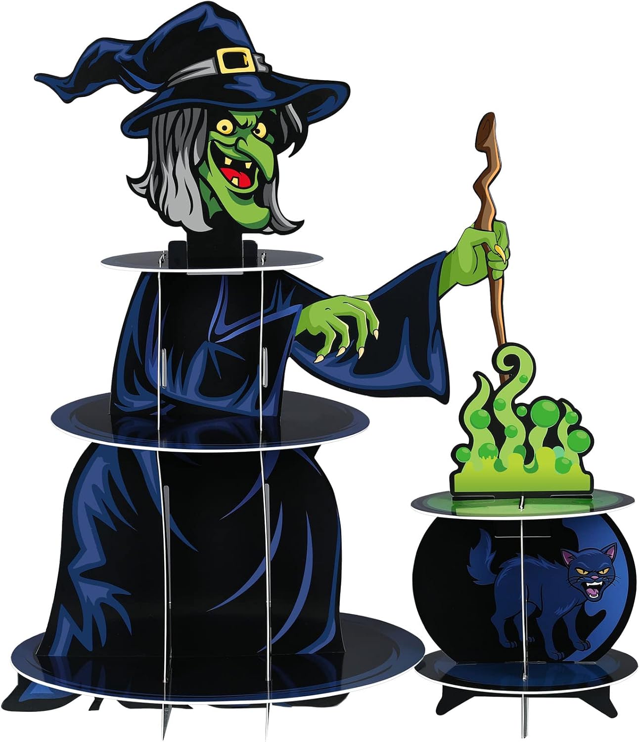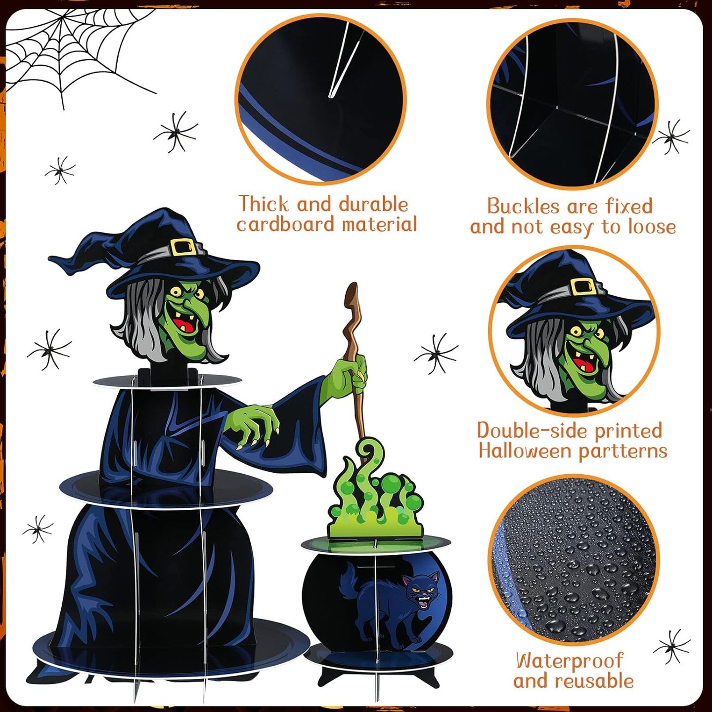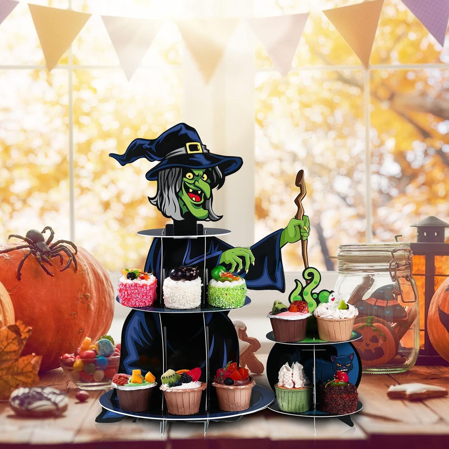 Halloween Cupcake Stand Decoration 3 Tier Halloween Cardboard Cupcake Holder Halloween Party Pumpkin Witch Cupcake Tower for for Halloween Trick or Treat Birthday Baby Shower Party Decor (Witch)