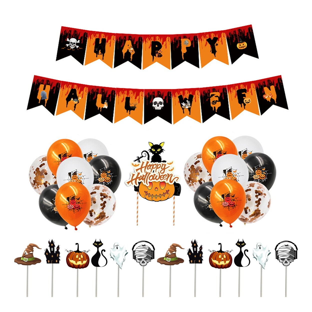 Halloween Cupcake Toppers Cat Pumpkin Spider Cupcake Picks Ballons Set Halloween Toothpick Banner For Party Decor