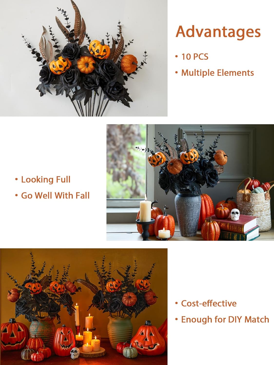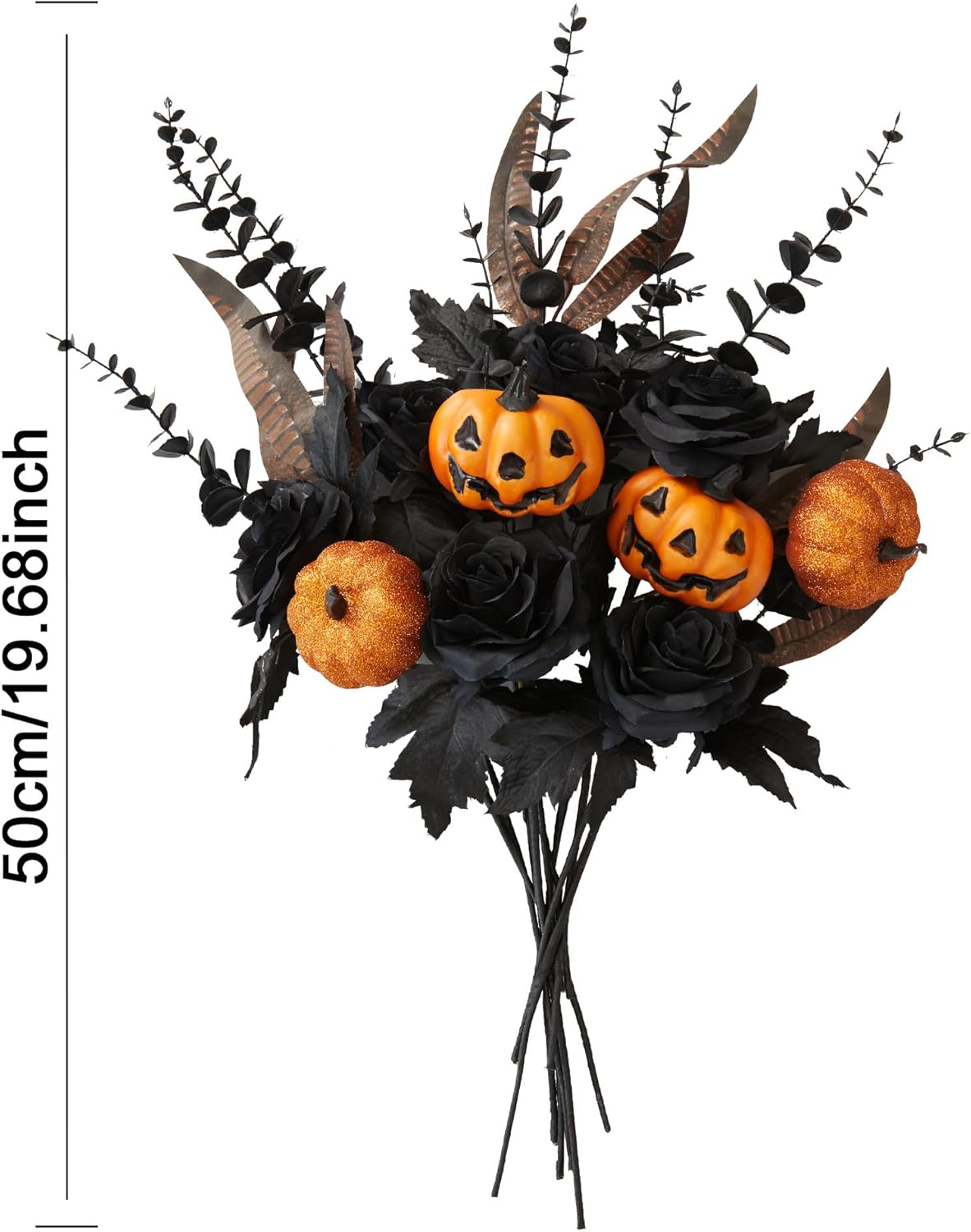 Halloween Decor Artificial Flowers Black Roses with Pumpkins