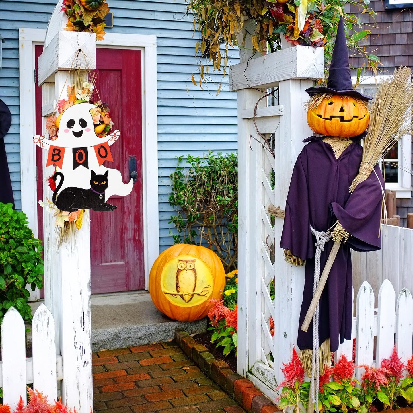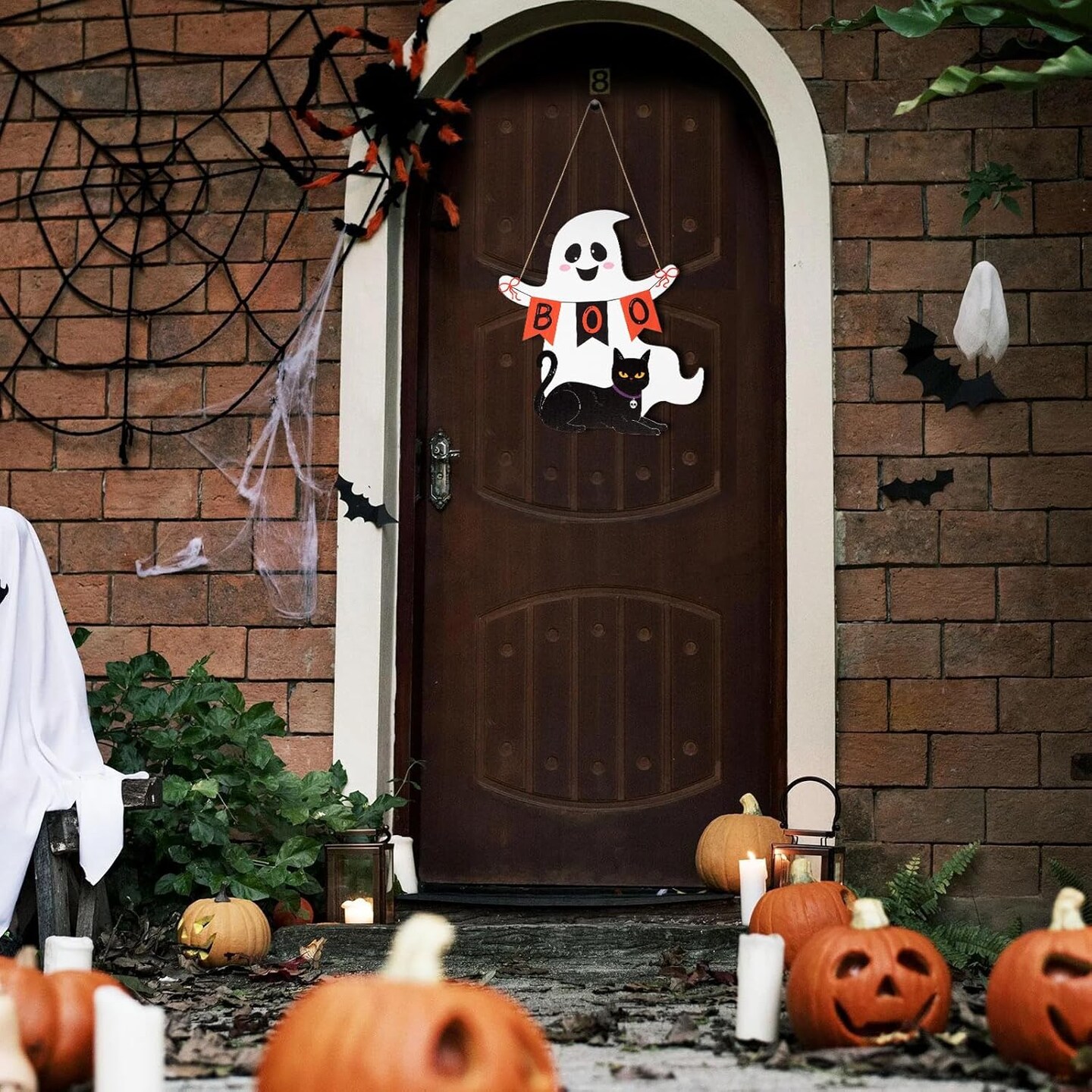 Halloween Decoration Wooden Ghost Door Wreath