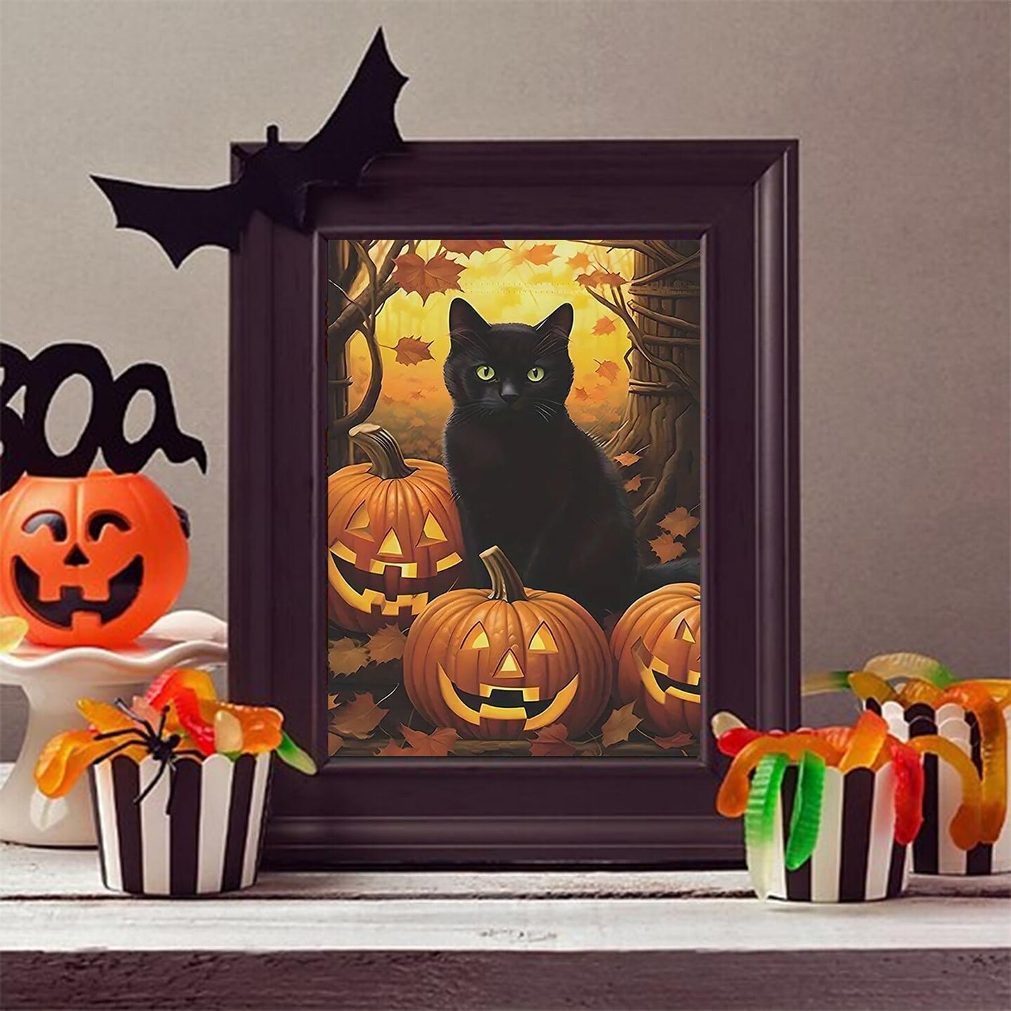 Halloween Diamond Art Kits for Adults, Cat Pumpkin 5D Diamond Painting Kits