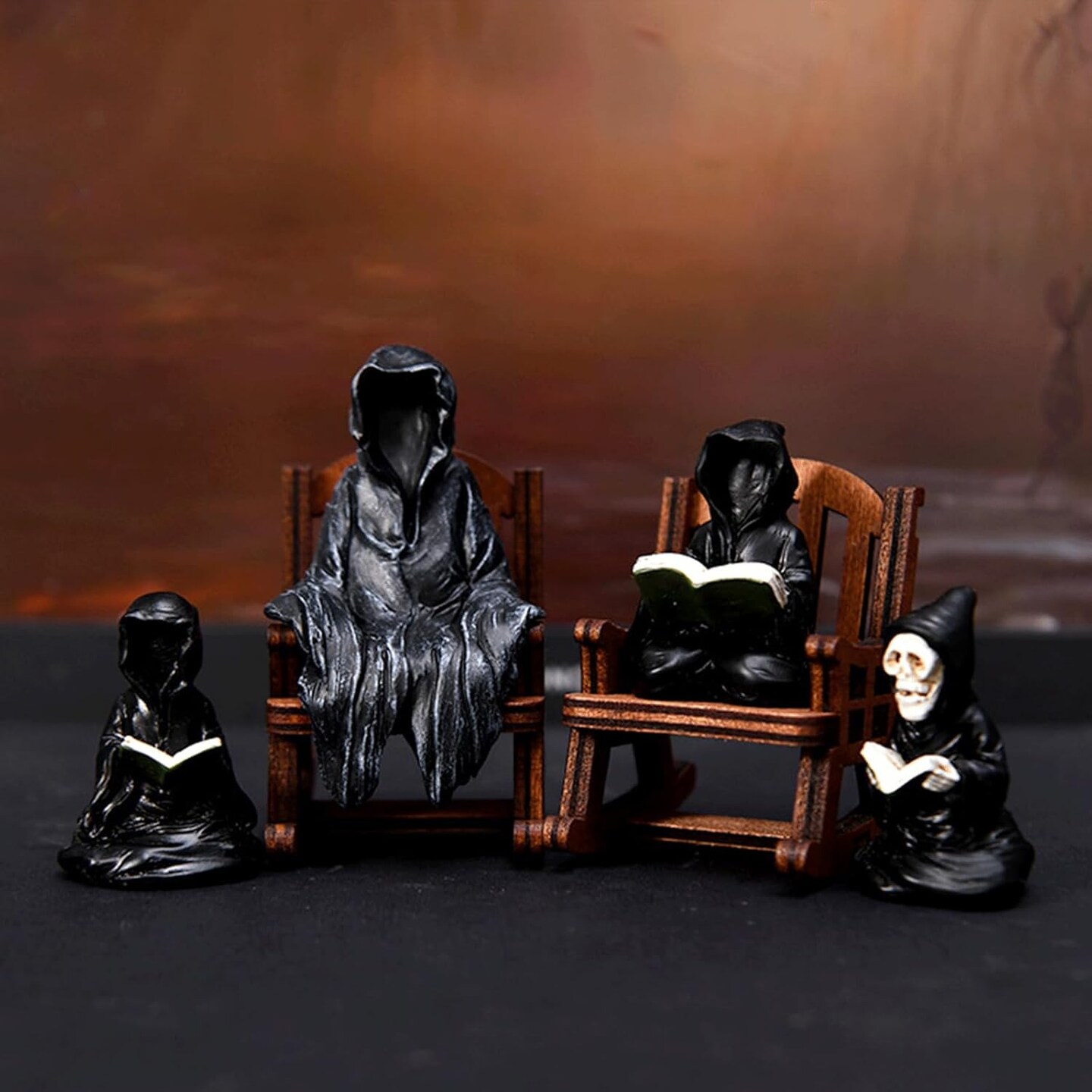 Halloween Figurines Ghost Reading Book Grim Reaper(Black Grim Reaper-reading)