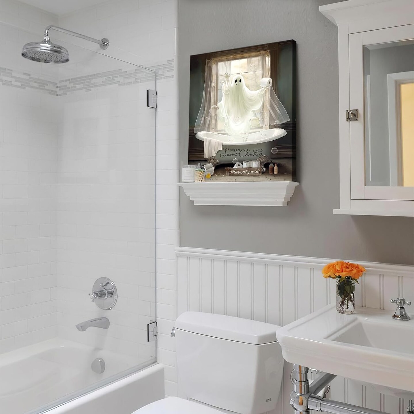 Halloween Funny Ghost Canvas Wall Art - White Ghost Picture (12x16 Inch)