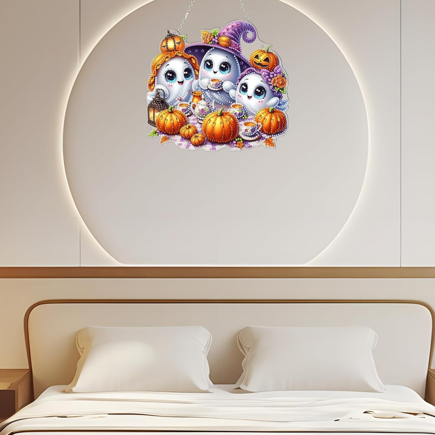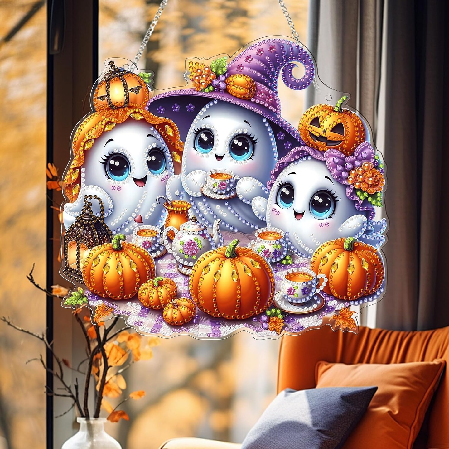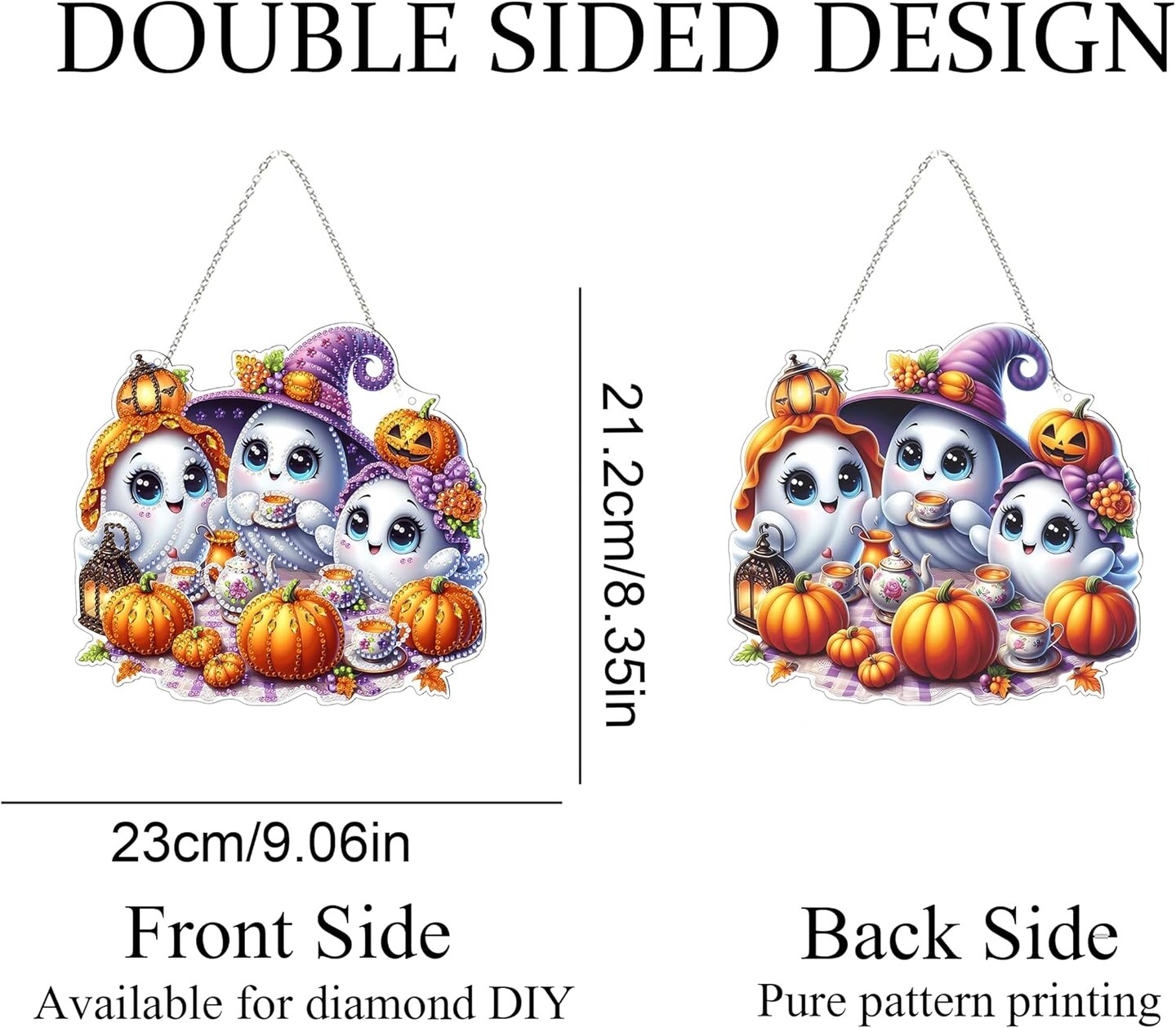 Halloween Ghost Diamond Art Hanging Kit for Adults – Double-Sided 5D DIY Acrylic Window Pendant, Special Shaped Rhinestones, Home & Garden Wall Decor