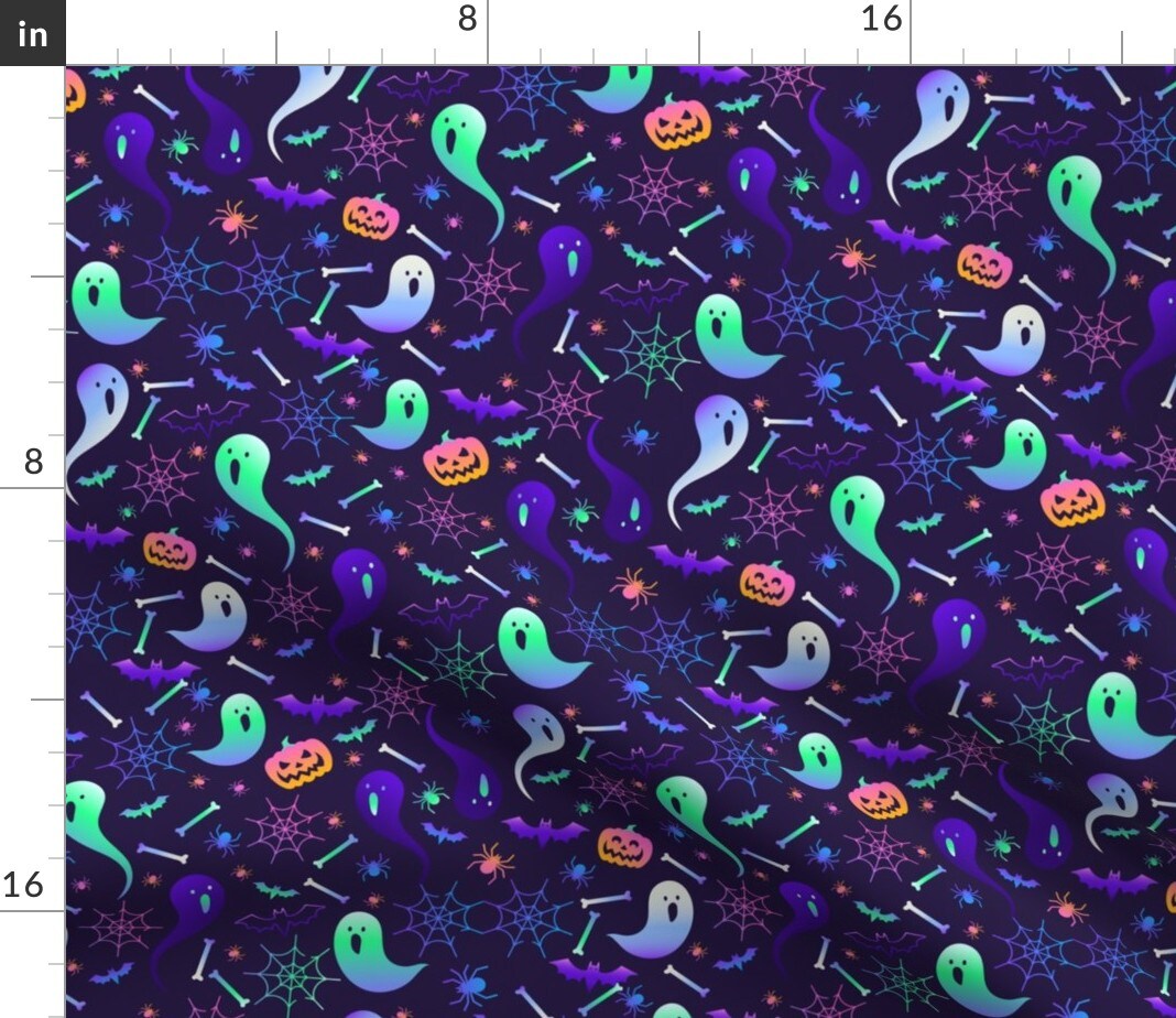 Halloween Ghost Spider Bones Black Orange Skulls Kids Custom Printed Fabric by Spoonflower Various Fabrics by the Yard or Fat Quarter
