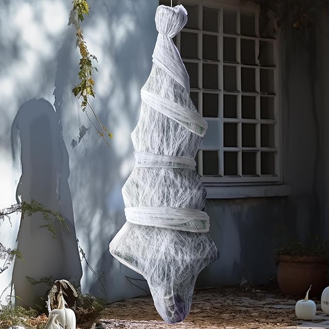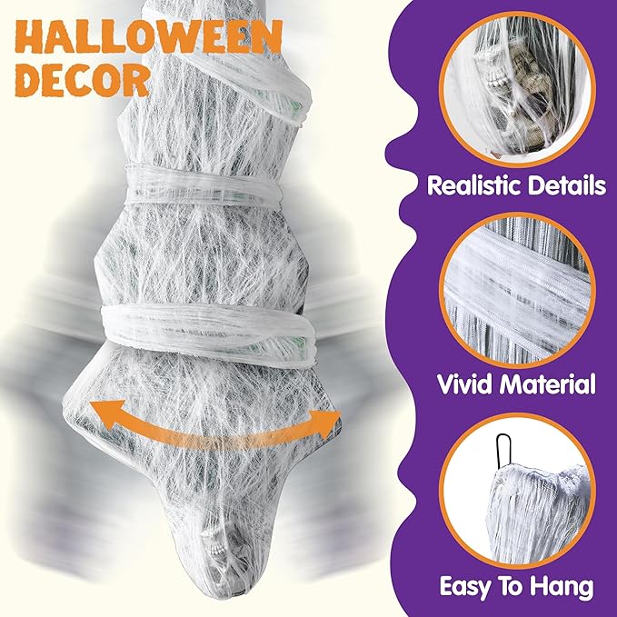 Halloween Hanging Cocoon Corpse for Halloween Decorations Outside,Life Size Corpses Props Scary Skeleton Body Decor Graveyard Halloween Haunted House, Hanging Outdoor Decorations Clearance