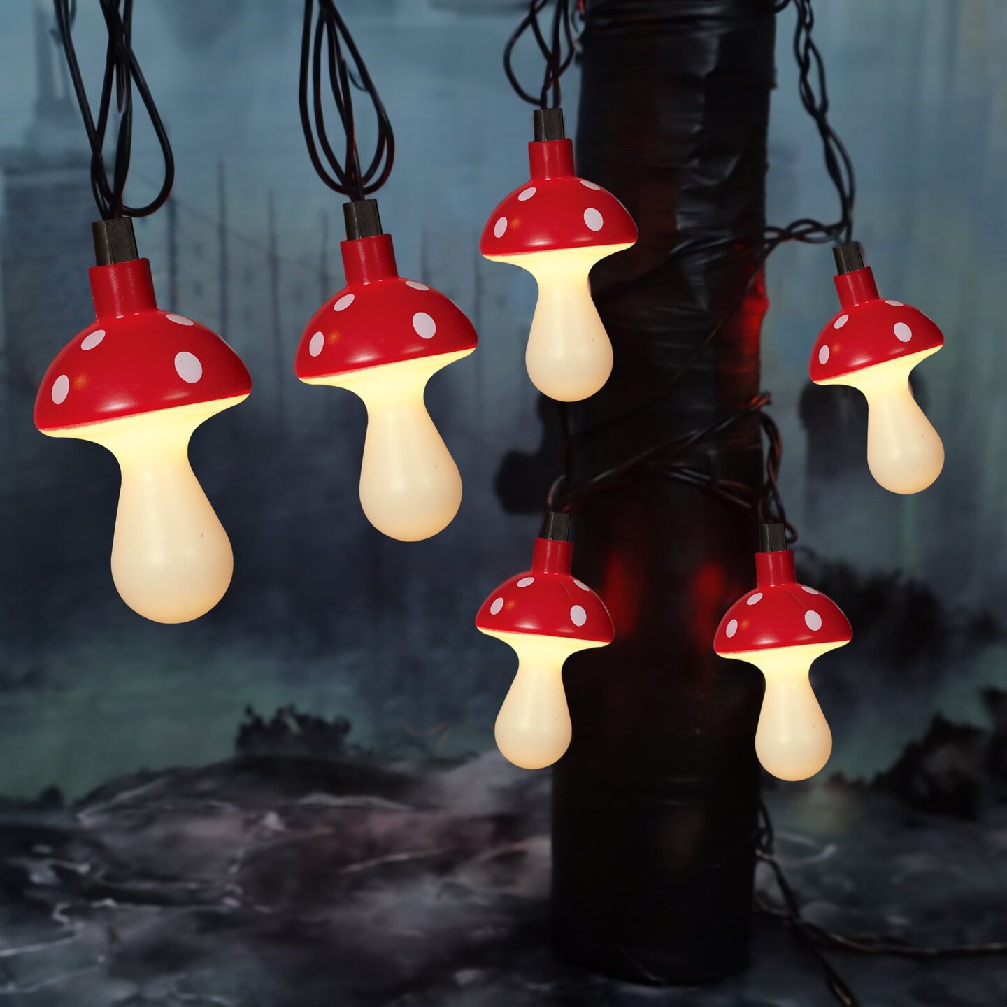 Halloween Indoor/Outdoor Mushroom LED String Lights Warm White 6.5 ft, 10 Count