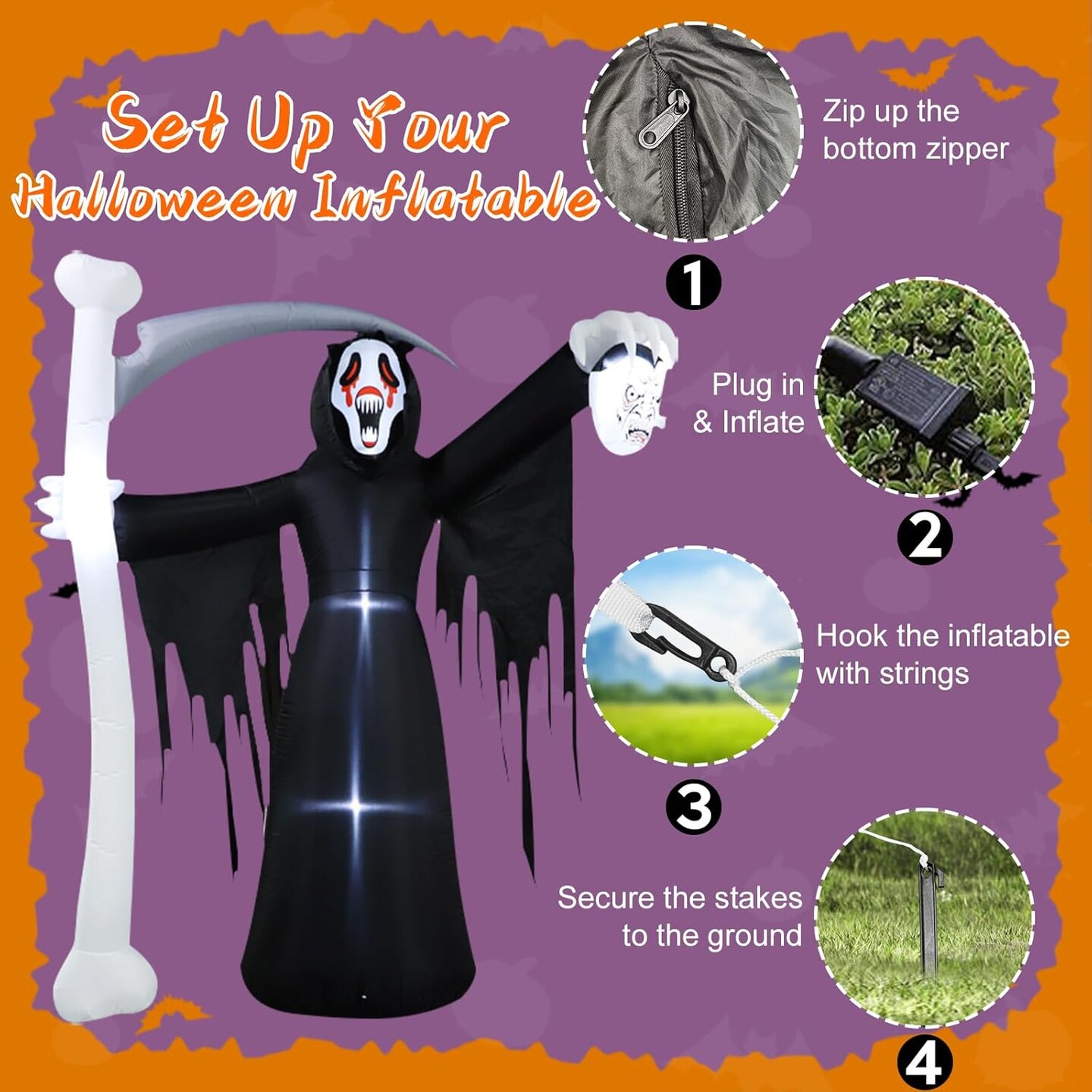 Halloween Inflatables Grim Reaper with Scythe Halloween Inflatable Decorations Outdoor