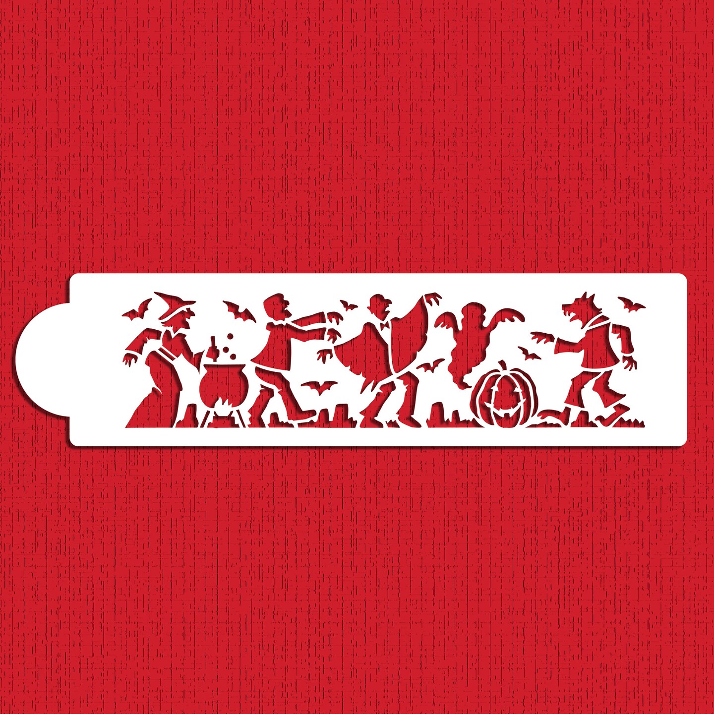 Halloween Monster Cake Stencil Side: Witch, Dracula, Ghost, Werewolf, Frankenstein | C460 by Designer Stencils | Cake Decorating Tools |