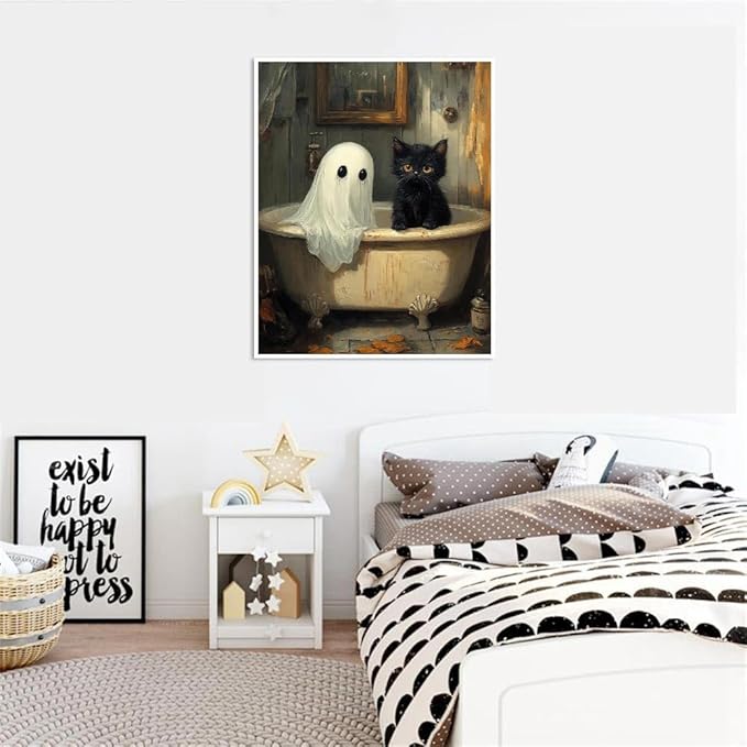Halloween Paint by Numbers Kit for Adults, Ghost Oil Painting by Numbers with Brushes, Black Cat Art and Crafts Canvas Kit for Beginner Home Decor 16x20 inch / 40x50 cm