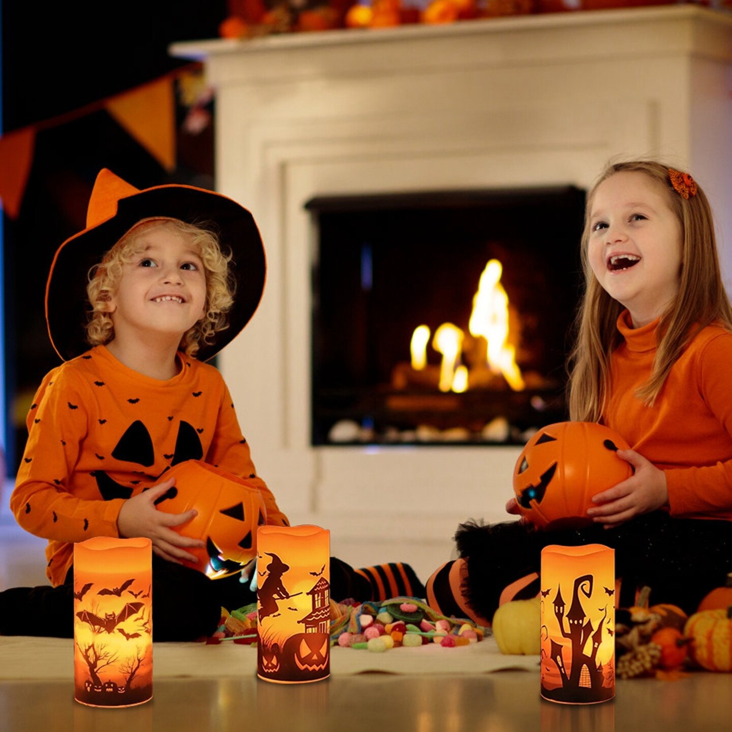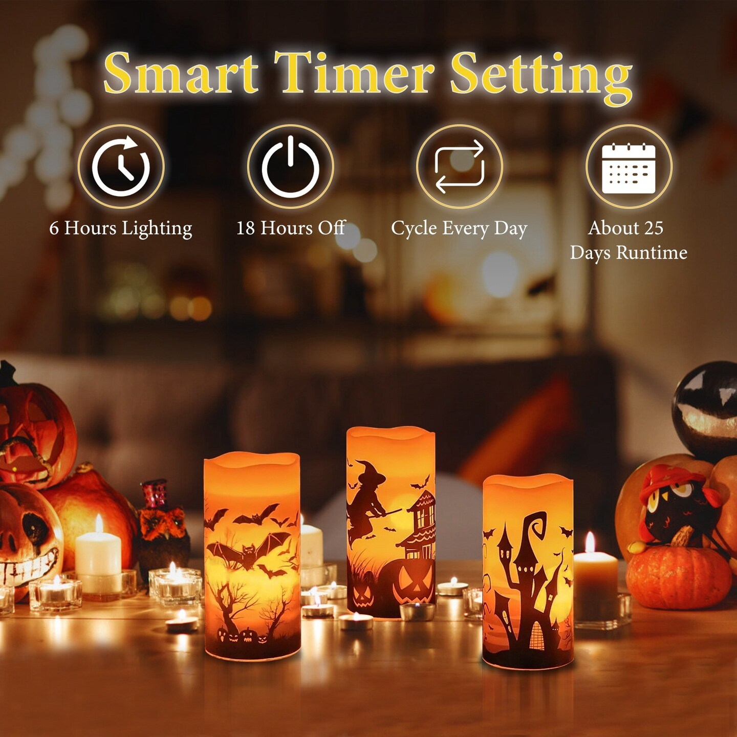 Halloween Party Decoration - 3 Pack Halloween Flameless Candle Lamp with Timer Setting and Battery Operated
