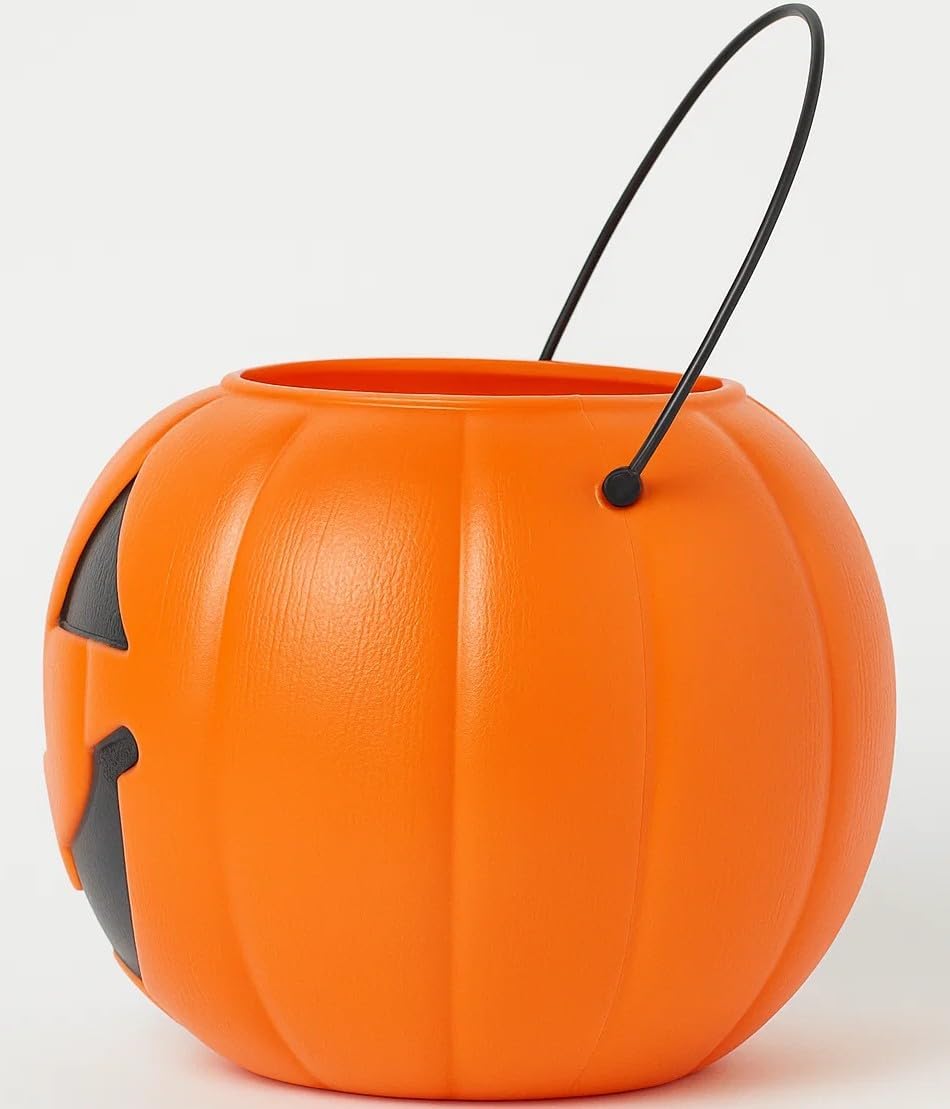 Halloween Pumpkin Jack O' Lantern Candy Bucket (Orange) - 8"L x 8"W x 7"H